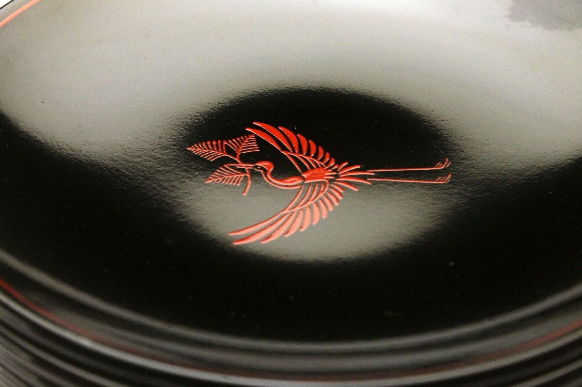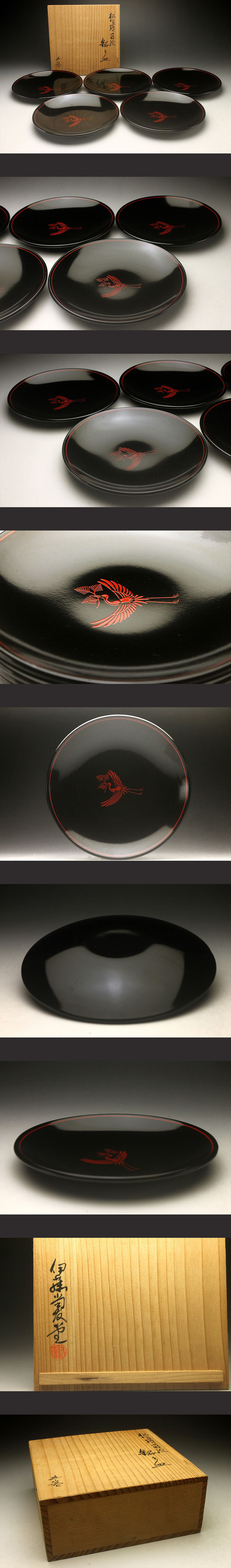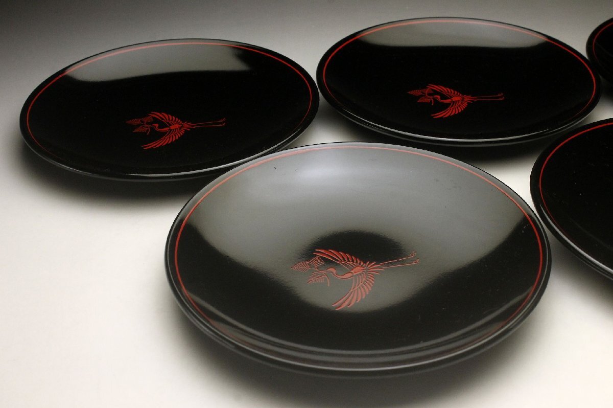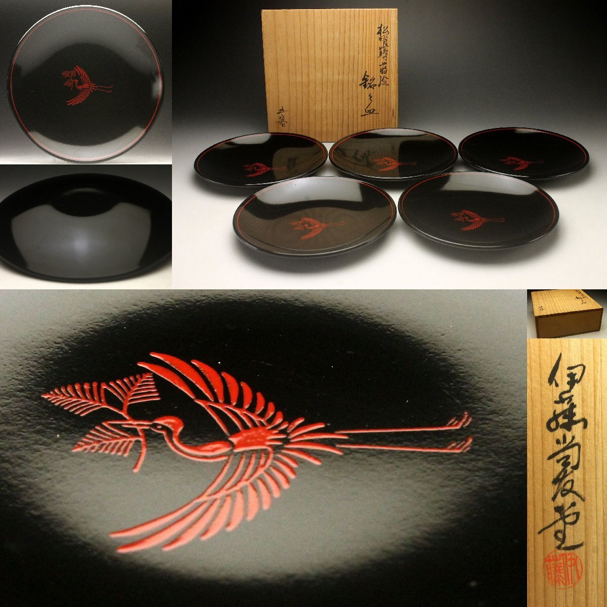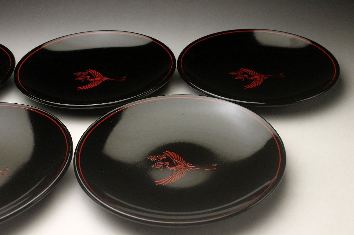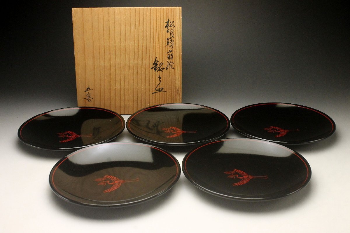 【余韻】 茶道具 松喰鶴蒔絵 銘々皿 5客★共箱<同梱可>