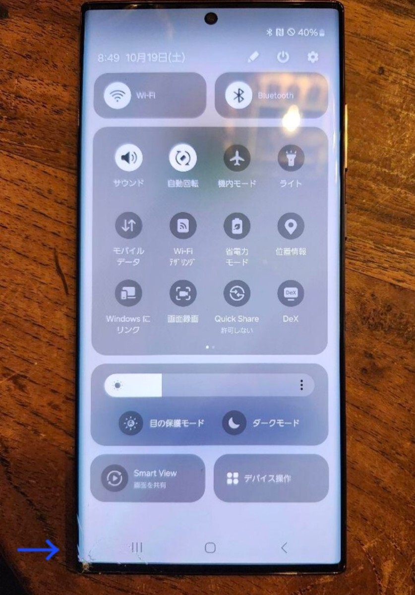 画像映りやタップに問題ありませんが、左下にヒビがあります。