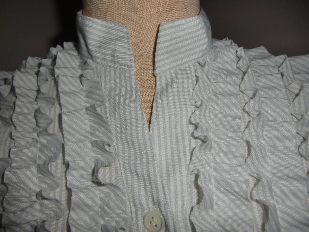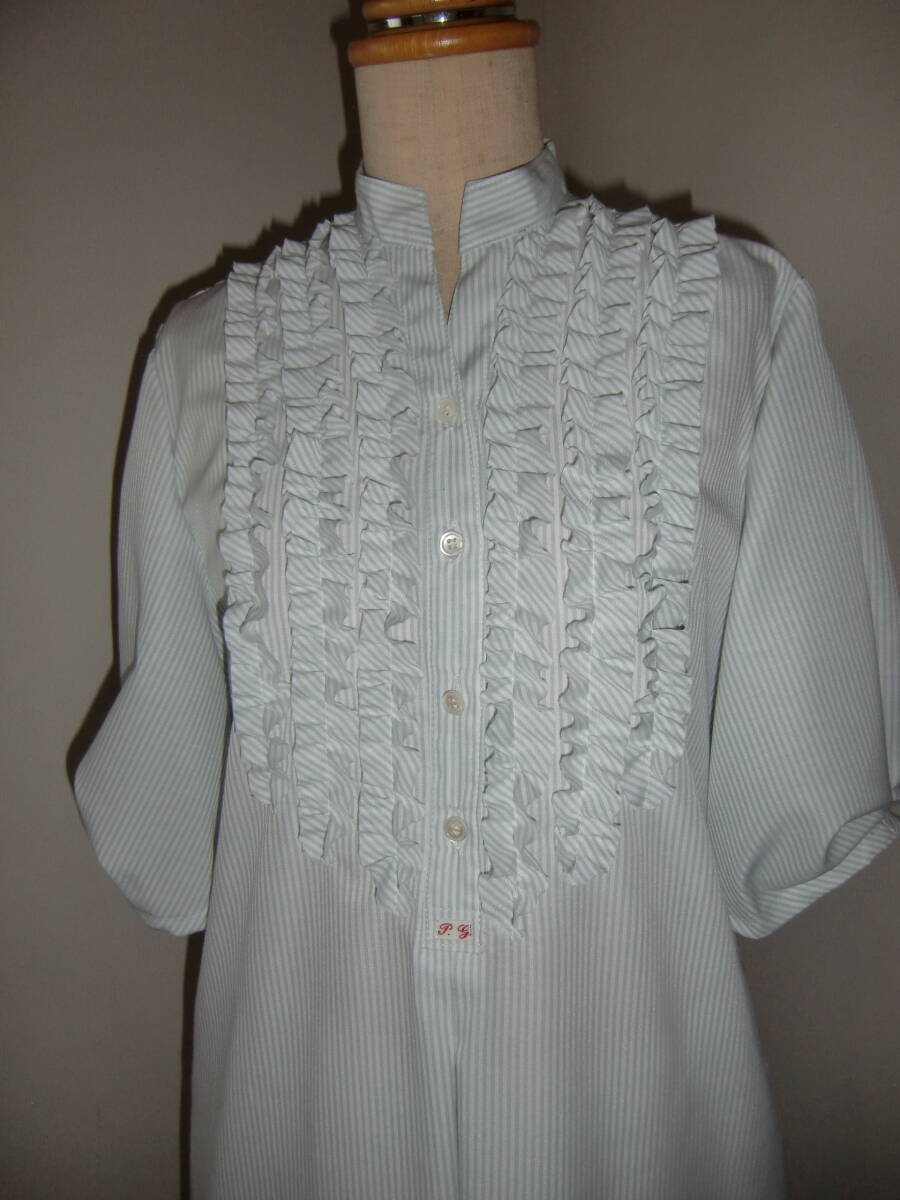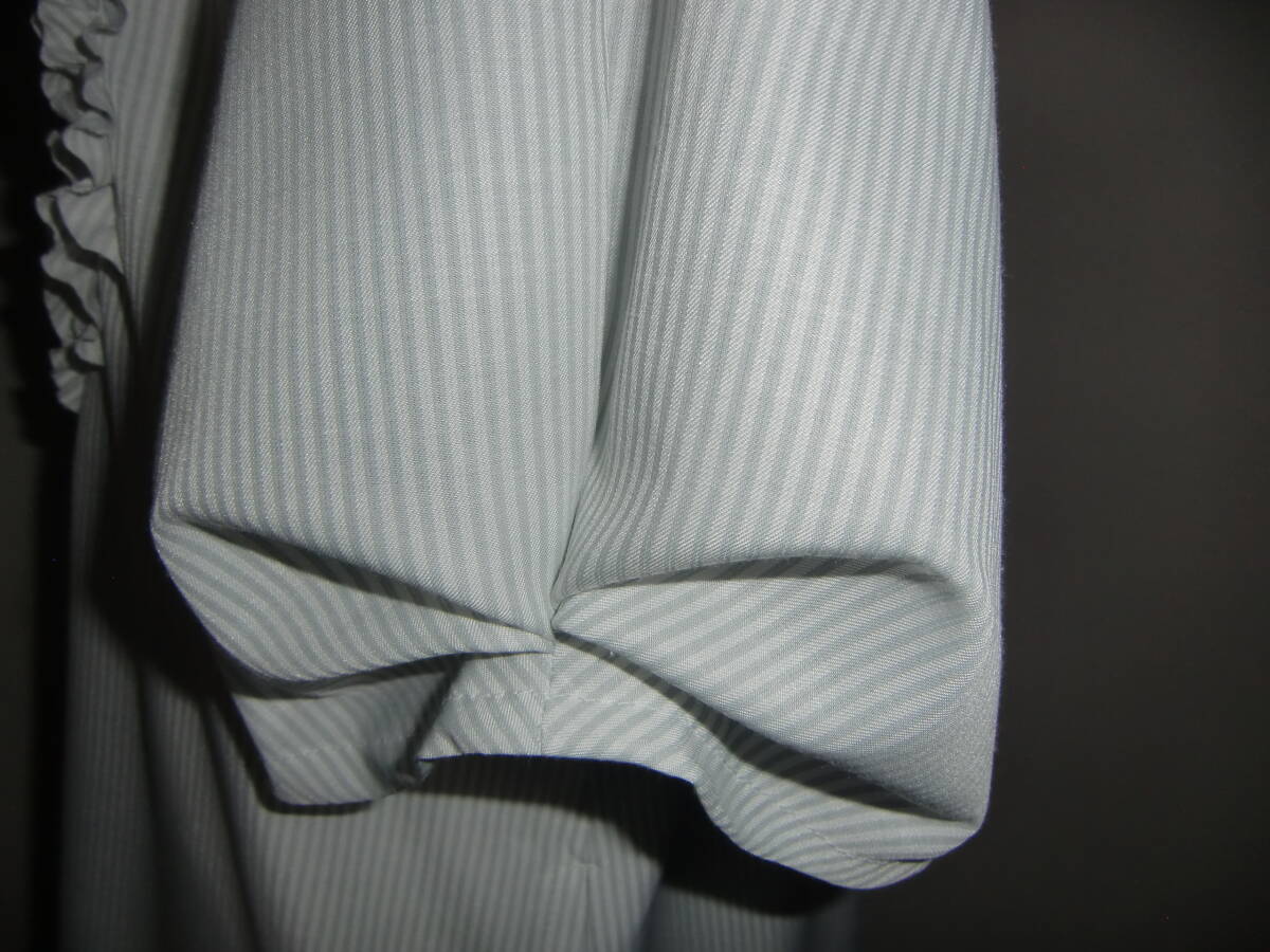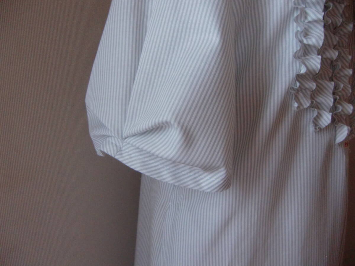 さらさらのコットン混の薄手のストライプでニュアンス袖、胸元にフリルを寄せたスキッパー ワンピースを製作しました。 お色はオフと淡いグレーのストライプです。 コットンとポリエステルの混紡の薄手のサラサラとした生地です。 透け感がありますので1枚でお召しになるときはペチコートを合わせてくださいね。 まだまだ暑い日が続きそうですのでハンドメイドしました。 ニュアンス袖であなただけのおしゃれはいかがでしょう。 着丈が長めですので、丈のお直しOKです。 【素 材】 コットン、ポリエステル 【お 色】 オフホワイトと淡いグレーの細いストライプ 【サイズ】肩幅:40 バスト:110 ウエスト:フリー 着丈:120 袖丈:31 裾回り:168 袖ぐり:53 (約 cm) ※平置きで測っています。多少の誤差はご容赦くださいね。 心を込めて制作していますが至らぬ点があるかも知れません。 手作りの温かさを感じて下さる方とご縁があれば嬉しいです。 サイズはお手持ちのお洋服と合わせてみてくださいね。 些細な点が気になる方は入札ご遠慮ください。 48時間以内のご連絡と2営業日以内のご決済をお願いいたします。 ※発送は平日のみです。 ※お受取り後、お受け取りのご連絡を頂ける方のみお取引ください。 | |