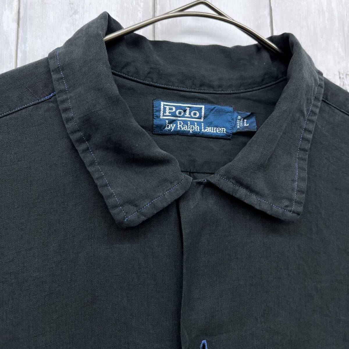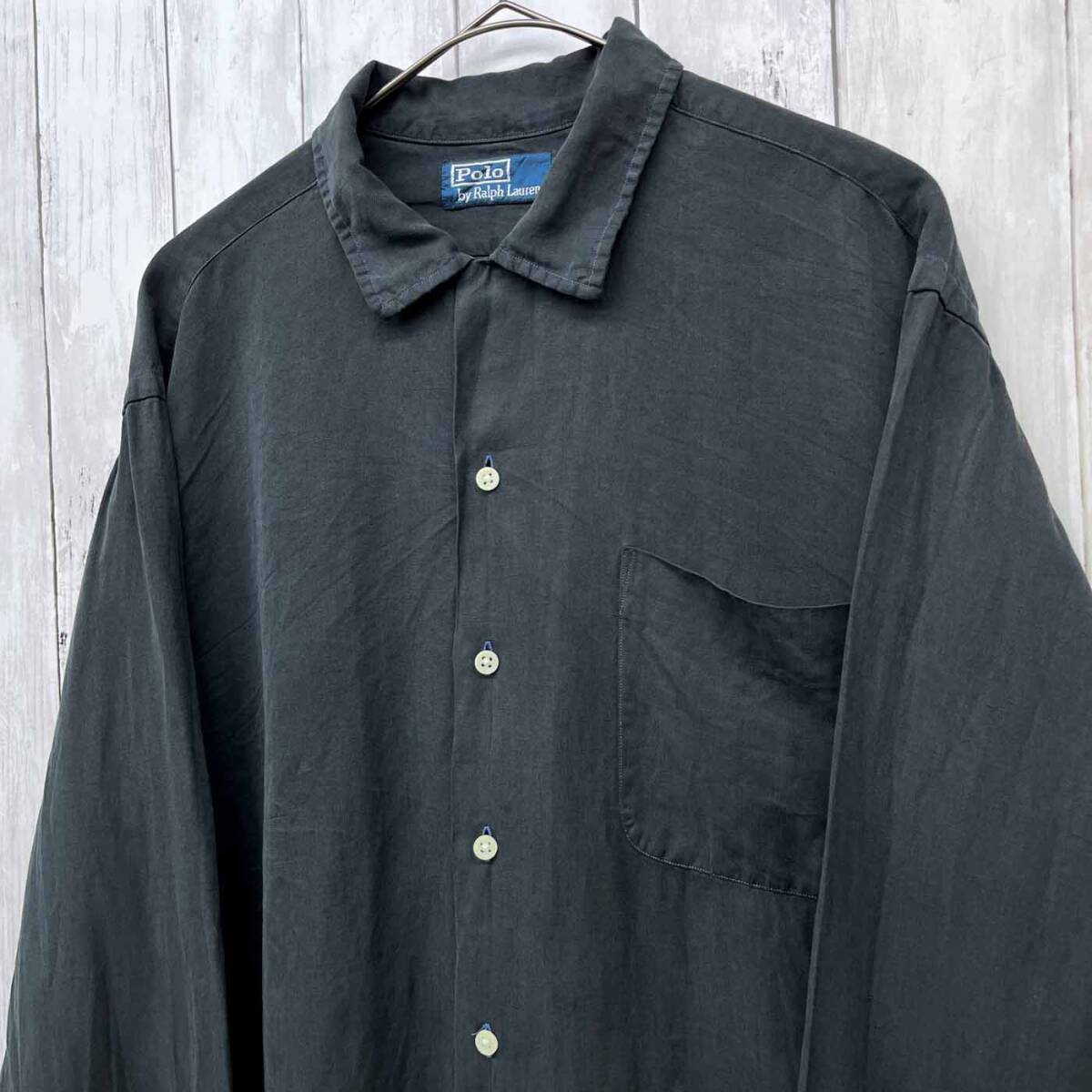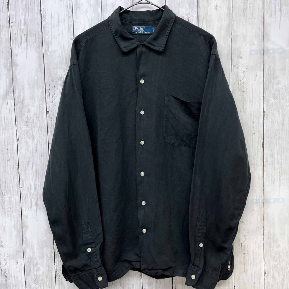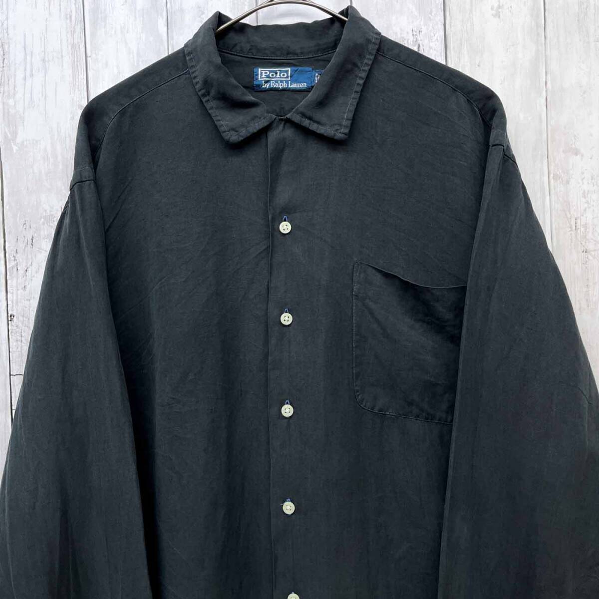 ラルフローレン Ralph Lauren 長袖シャツ メンズ ワンポイント リネンシルクシャツ オープンカラー リネン61% シルク39% Lサイズ 6-543