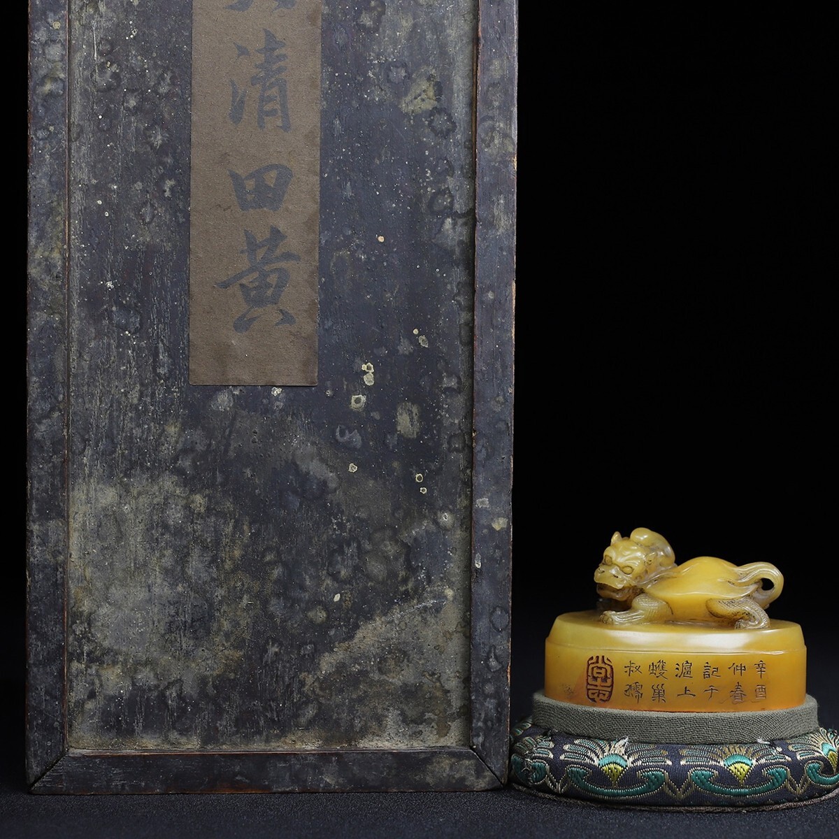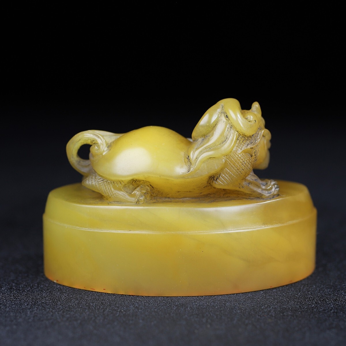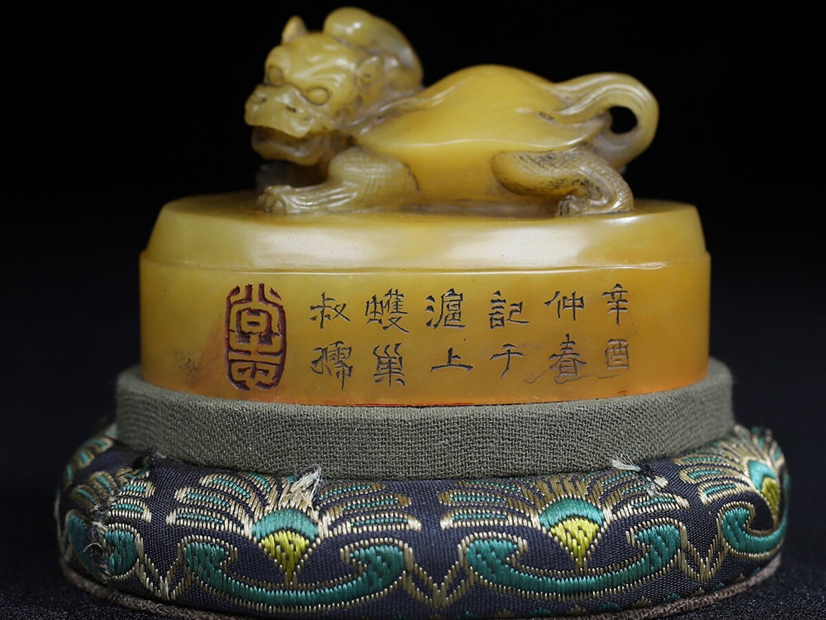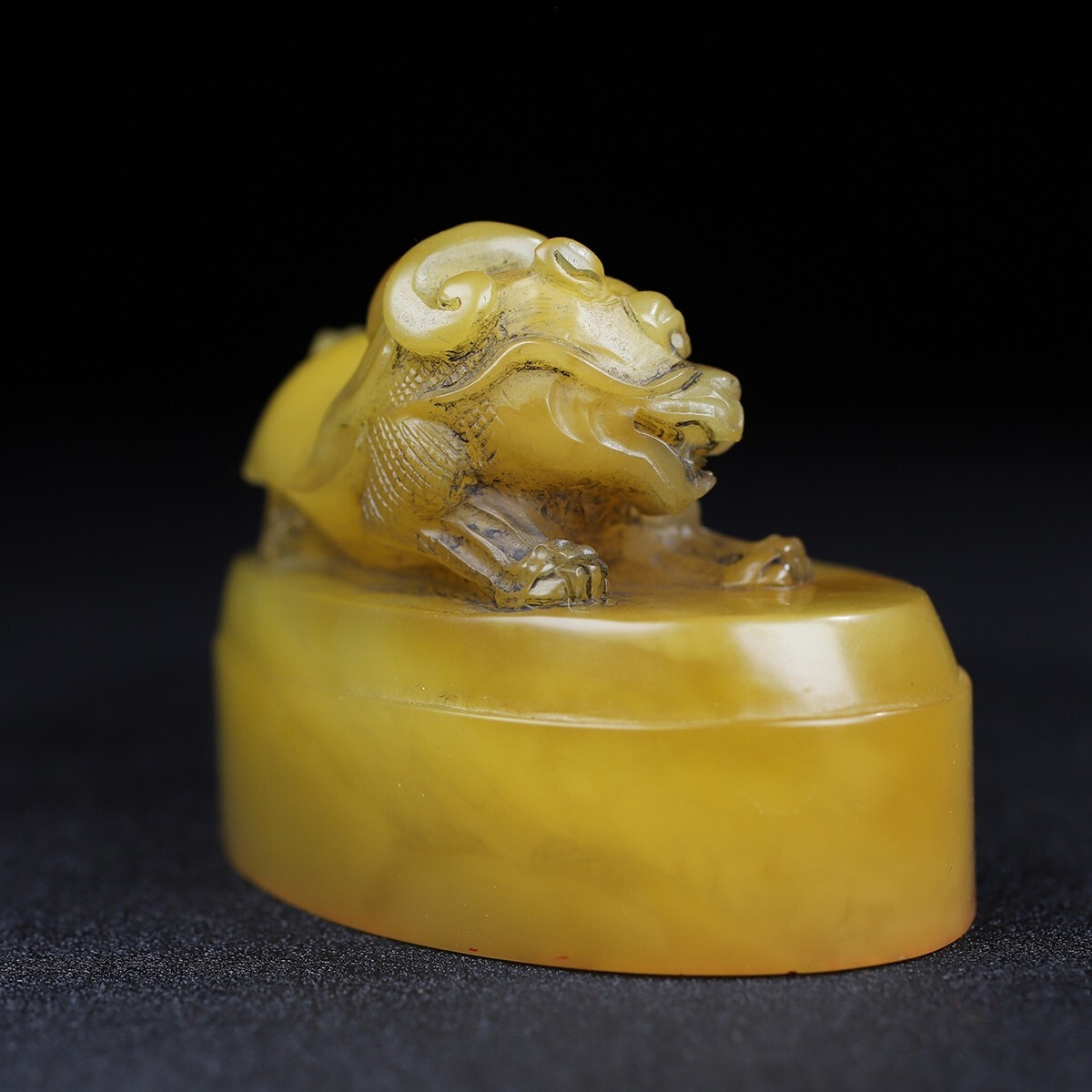 「清末民初 叔孺篆 老寿山石 田黄石彫り 龍竜鈕印章」極細工 擺件 古賞物 中国古美術 旧蔵出