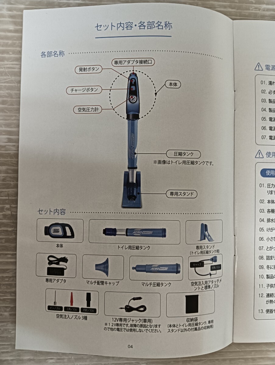 ・アタッチメントを使い分けることで、空気の力で詰まりの解消、排水管の掃除、空気入れと、1台で3つの役割を果たします。