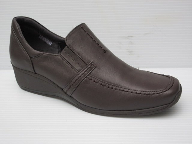 デザインと履きやすさで人気の高いステップナインのウエッジソールパンプス。歩きやすさなら、このパンプスにおまかせください。アッパーにはソフトな牛革を使用しているため、足当たりは非常に柔らかです。甲の両サイドにはゴムが入り脱ぎ履きもスムースです。また、アウトソールには衝撃吸収性のよいウレタンを採用しているので抜群の履き心地です。