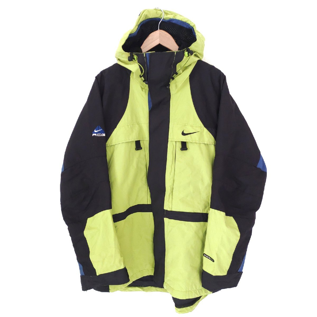 (^w^)b NIKE ナイキ ACG 90s ビンテージ 長袖 ZIP スキー スノボー ジャケット ジャンパー パーカー 防寒着 アウター 黄緑×黒 L O12317DD