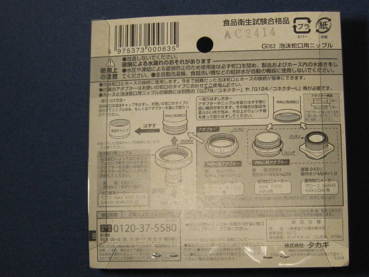 【新品】タカギ G063 台所などの泡沫蛇口にホースをつなぐ 泡沫蛇口用ニップル 食品衛生試験合格品 送料無料
