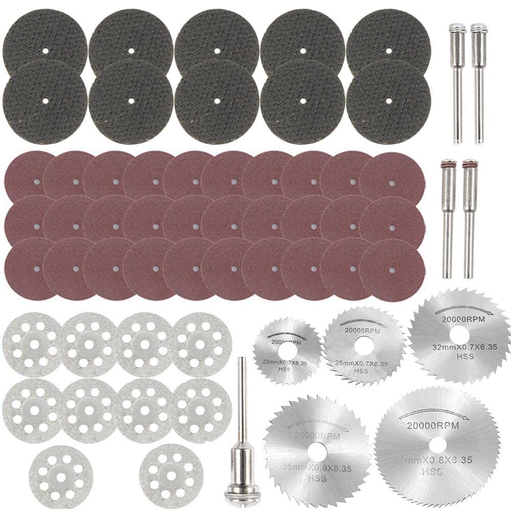 Wolfride 60個セット ミニルーターカッター リュータービット 切断砥石 ダイヤモンドカッター ダイヤモンドカッティングディスク 小径丸鋸刃 切断刃 研磨カッター 研磨工具 ミニルーター/ルーター/リューター/充電式ミニルーター/ペンルーター/パワールーター/アートルーター/マイクログラインダー用 3mm軸*5本