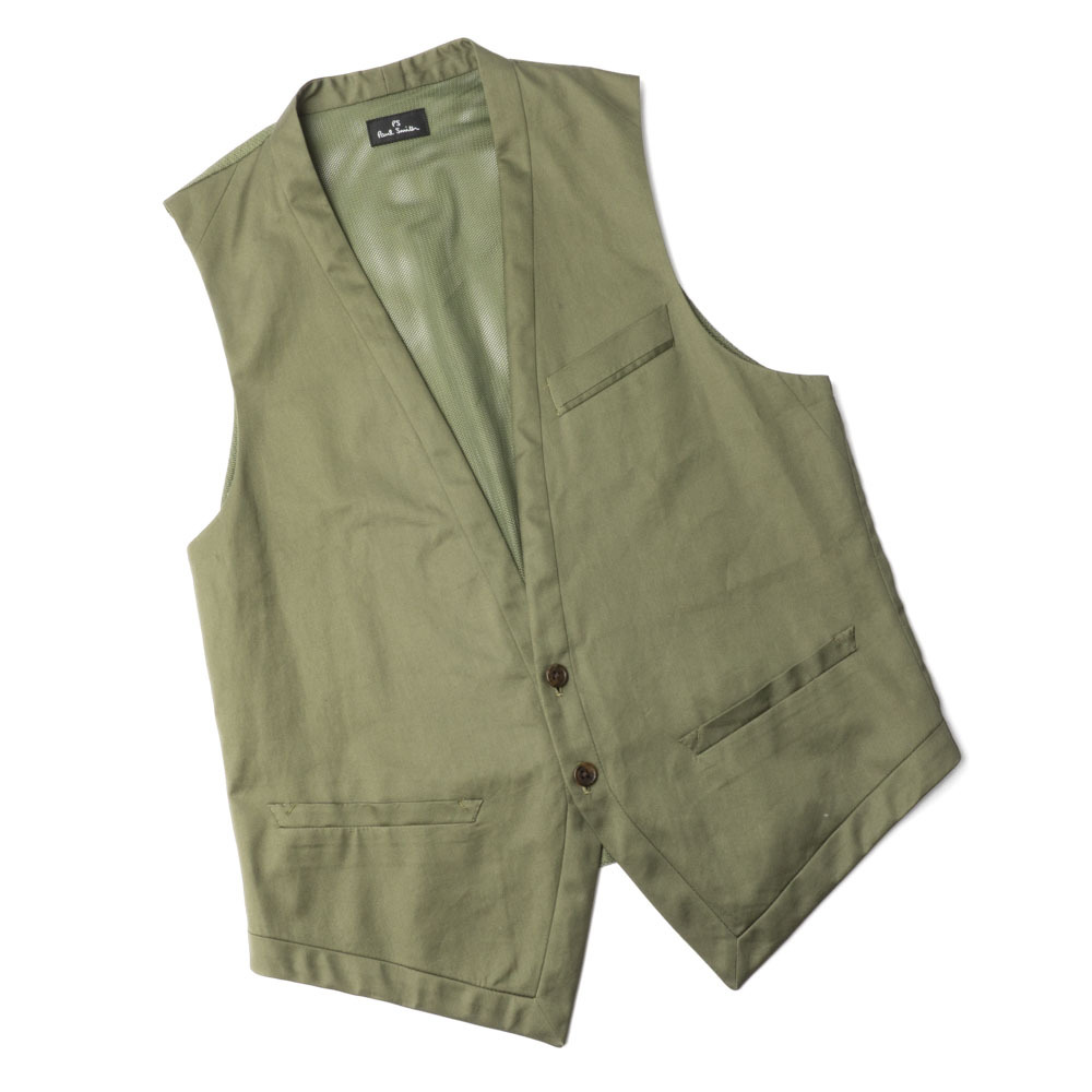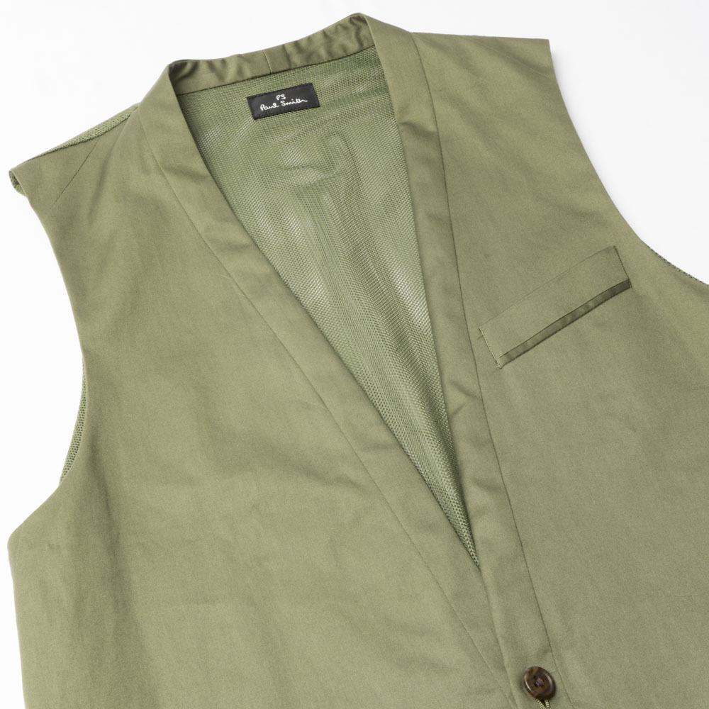 美品『ps Paul Smith』コットンジレ Mサイズ 裏地メッシュ カーキ ベスト ジョイックス ポールスミス メンズ 管理919