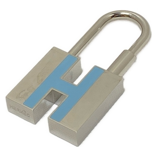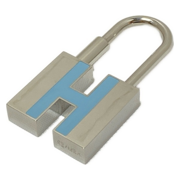エルメス HERMES キーホルダー(チャーム) - シルバー×ライトブルー キーリング/カデナ 美品 キーホルダー