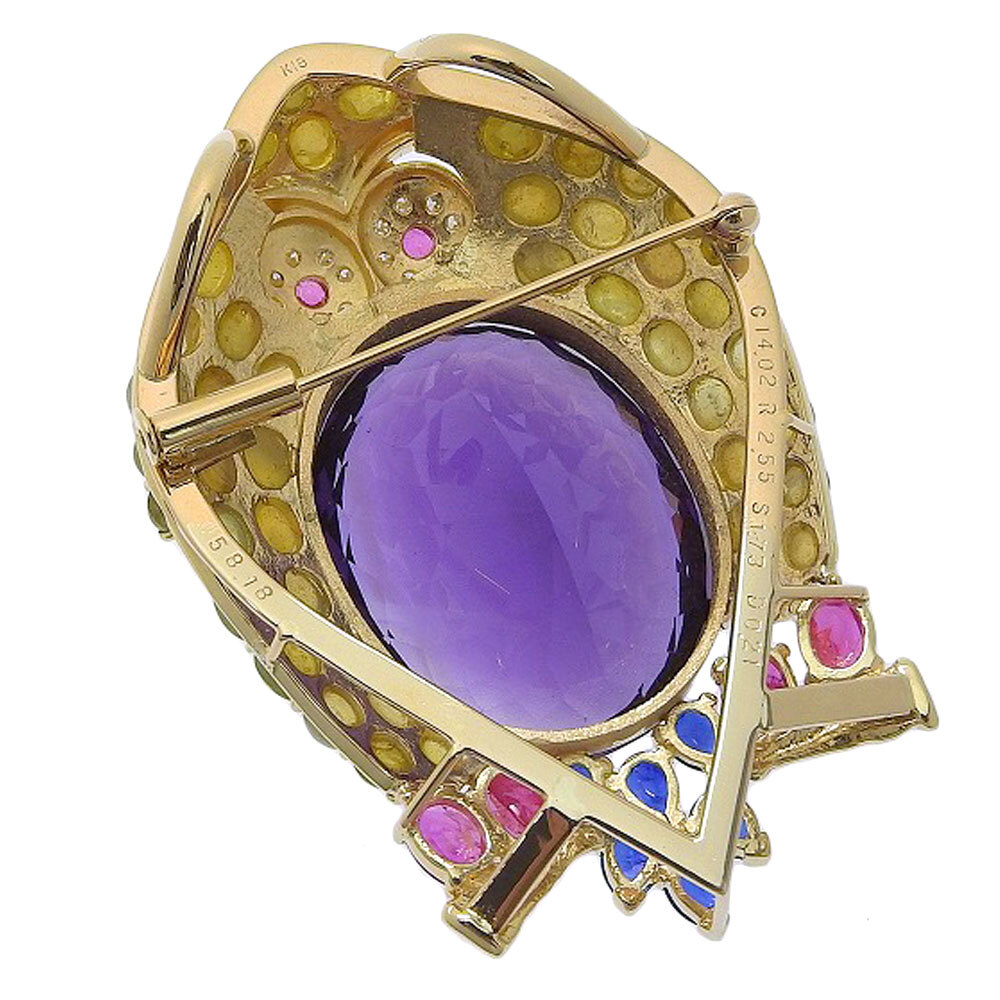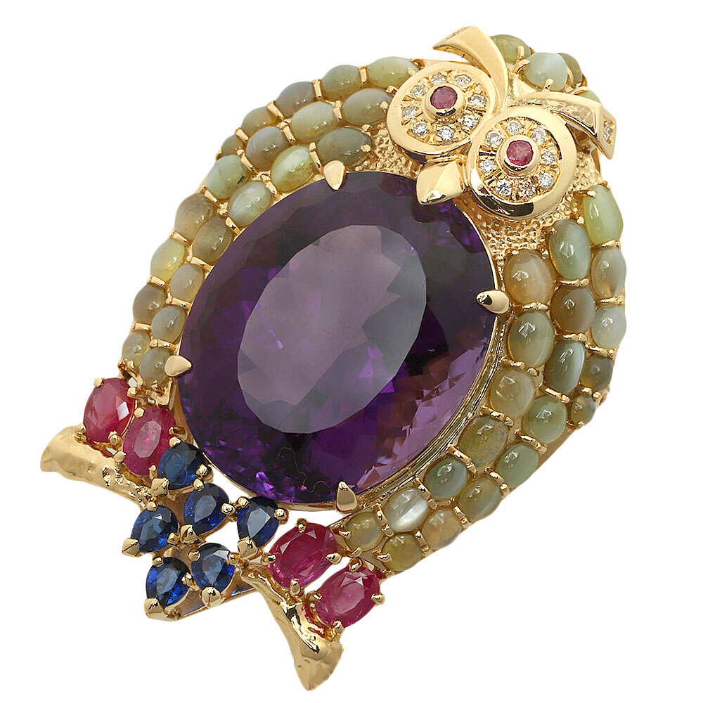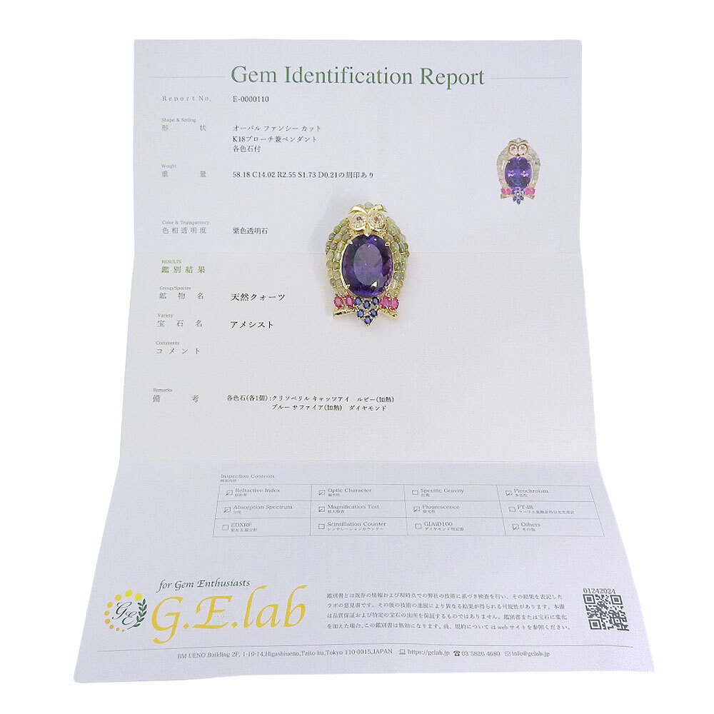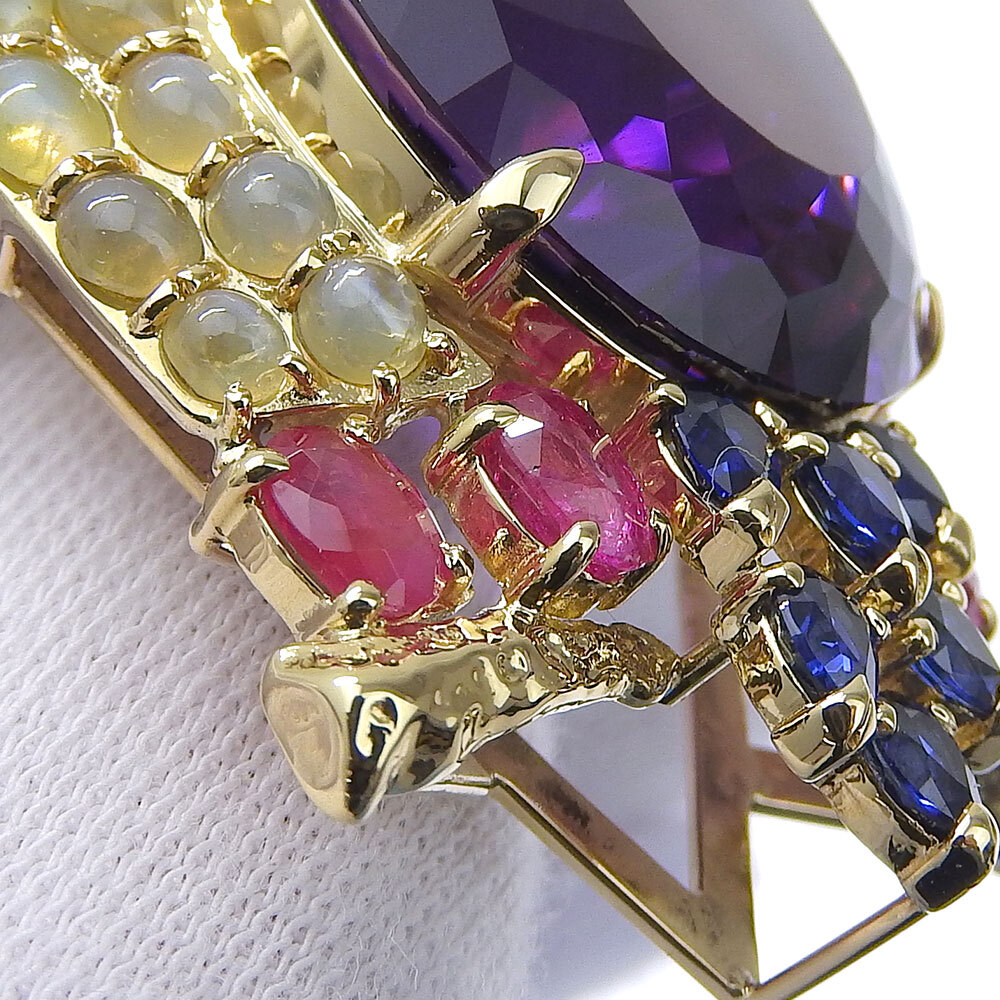 | 素材 | K18YG 石:アメジスト58.18ct メレキャッツアイ 14.02ct メレルビー 2.55ct メレサファイア 1.73ct メレダイヤモンド 0.21ct |