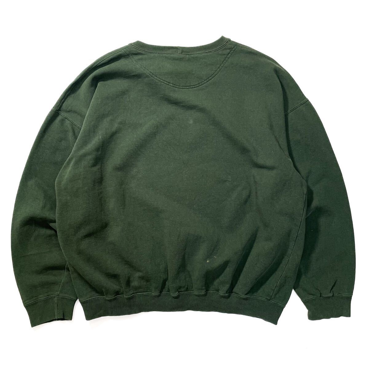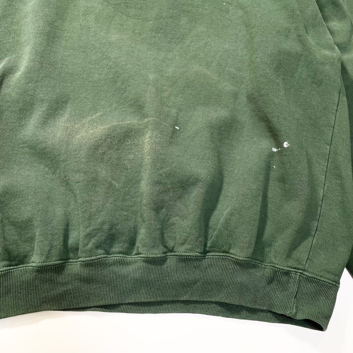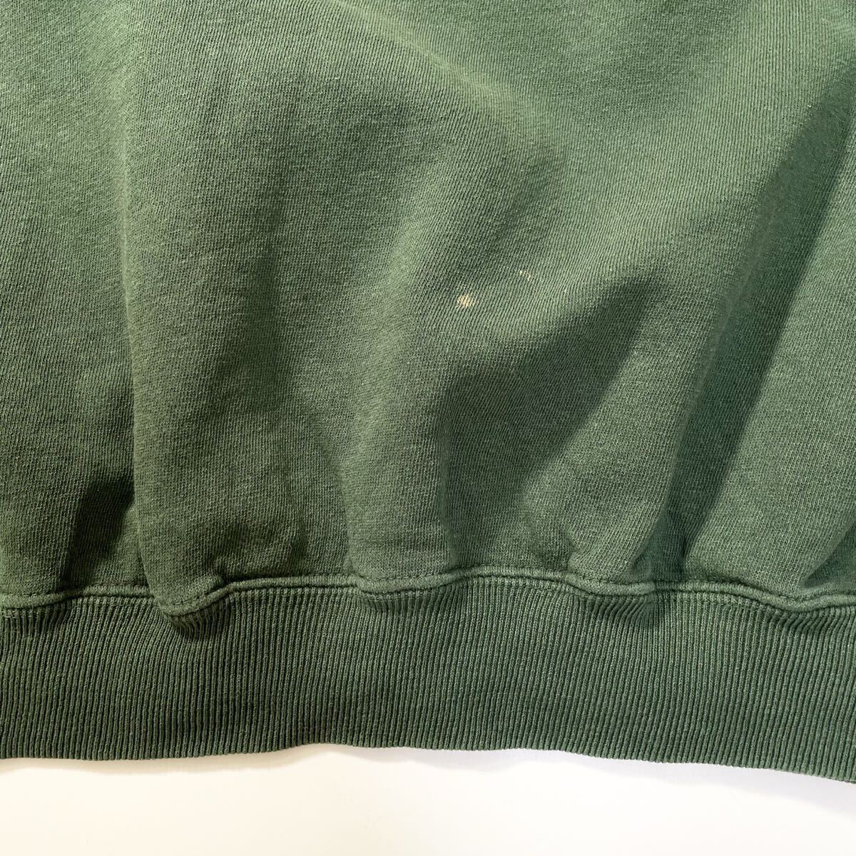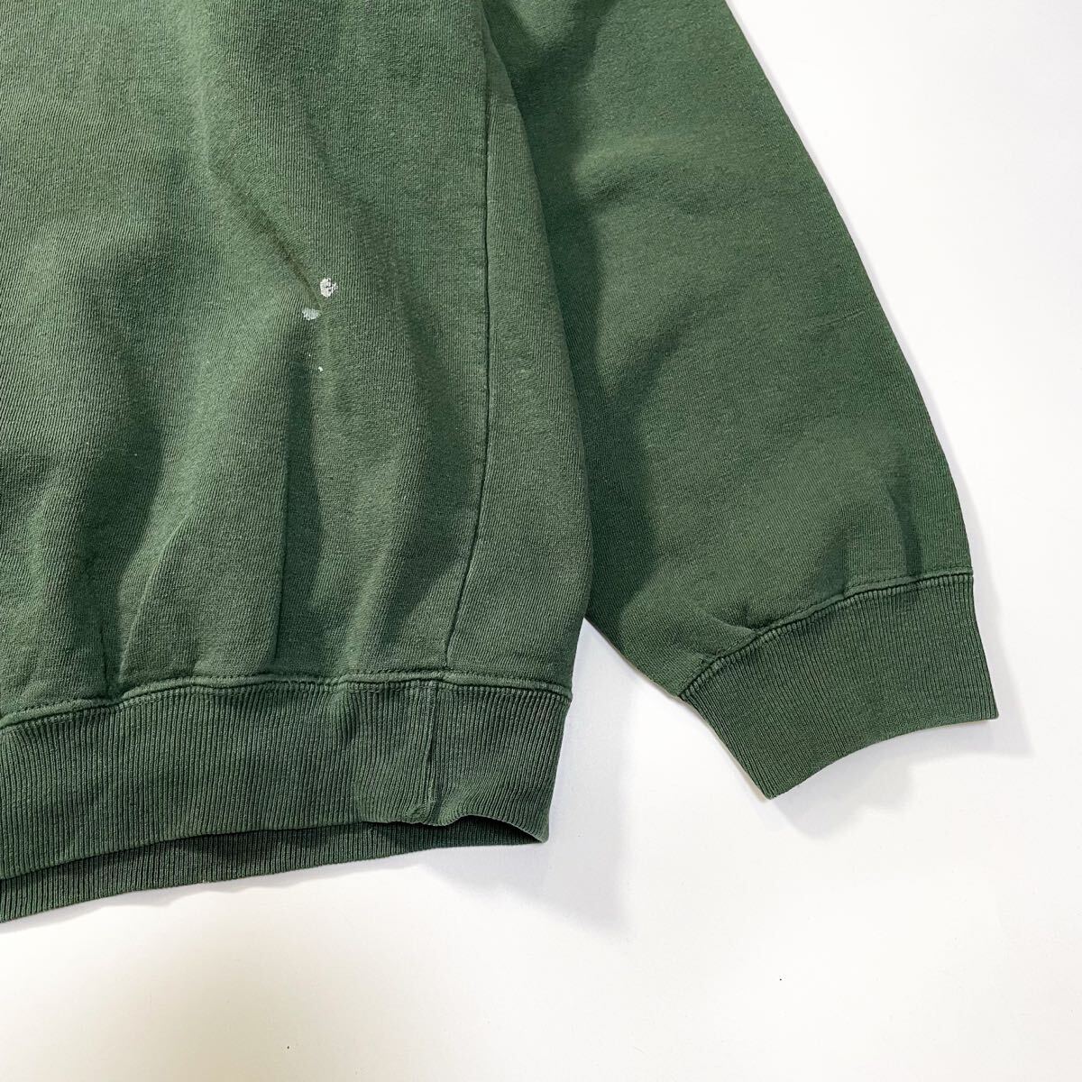 80s 90s GAP 前v スウェット トレーナー クルーネック フェード グリーン ビンテージ アメリカ製 usa old XL 無地 ギャップ ラッセル 00s