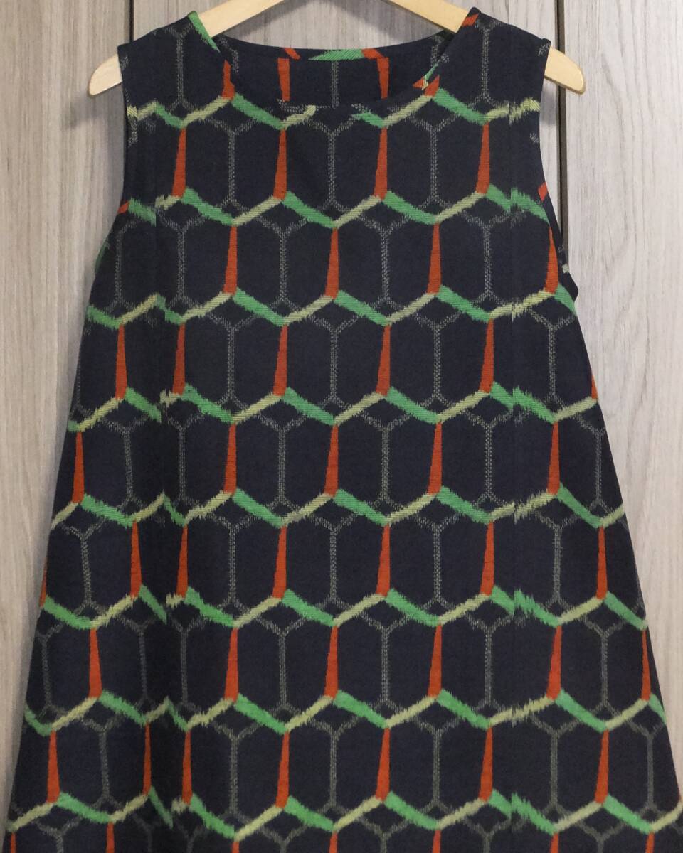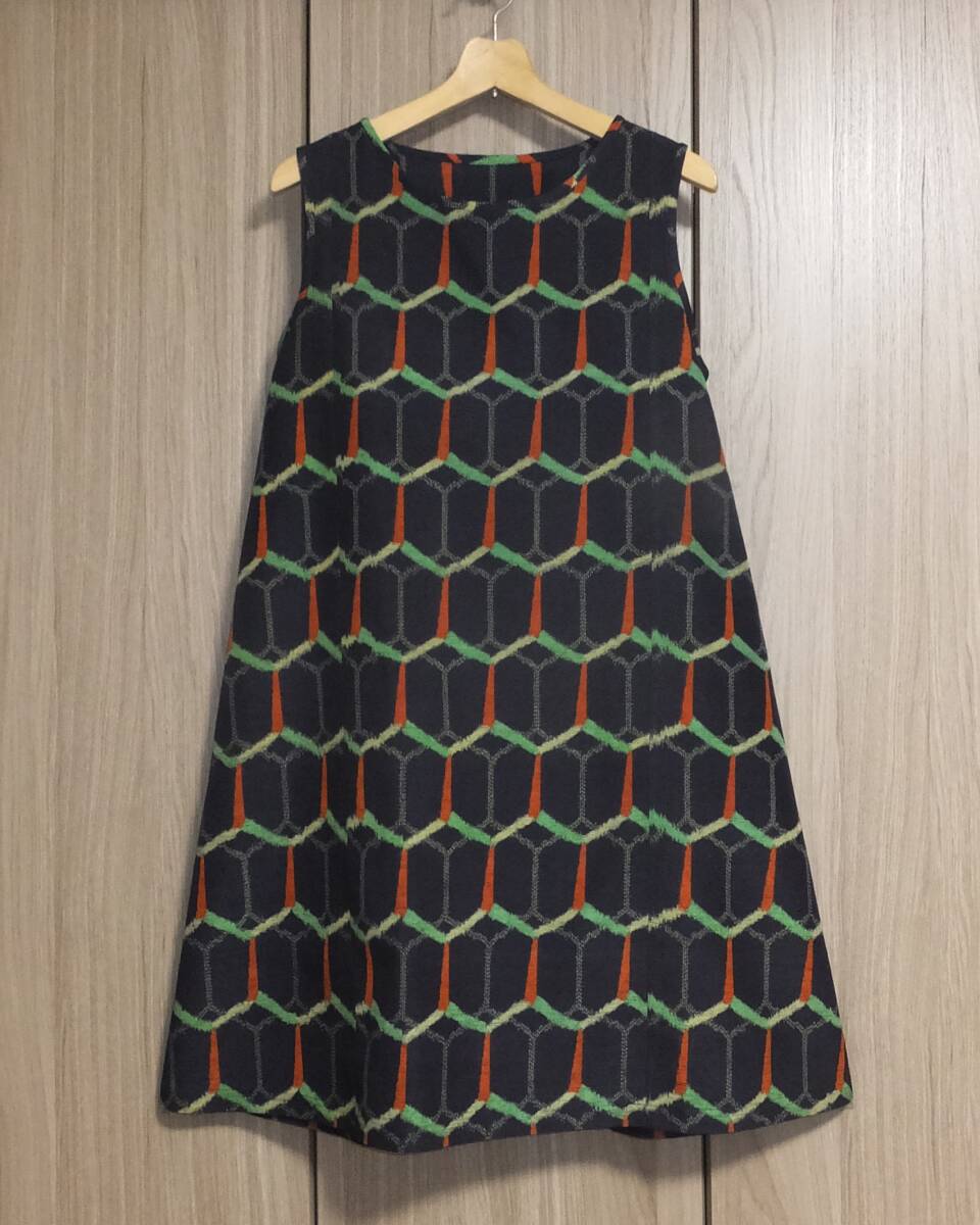 ♪送料無料 ハンドメイド 着物リメイク 古布 正絹 紘雅紬 亀甲 ノースリーブワンピース♪