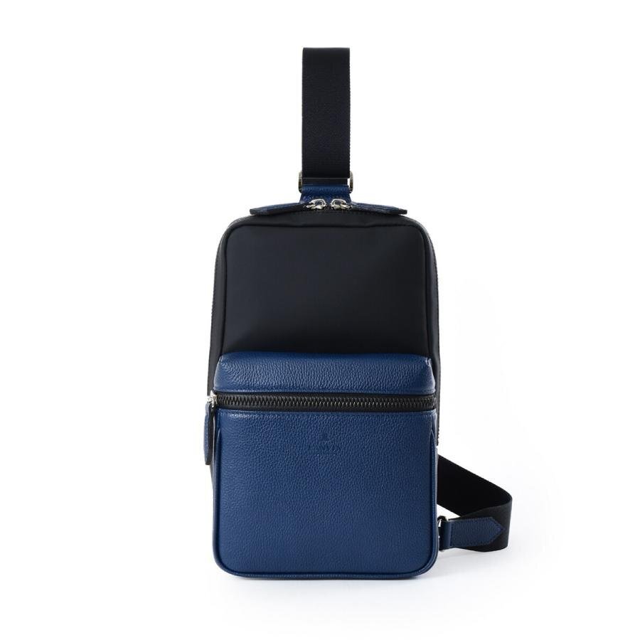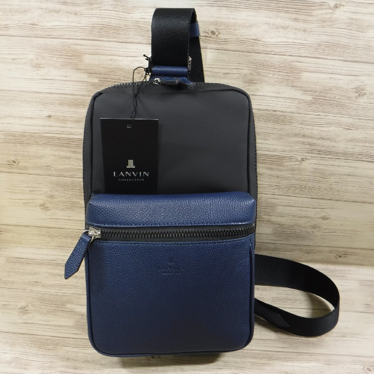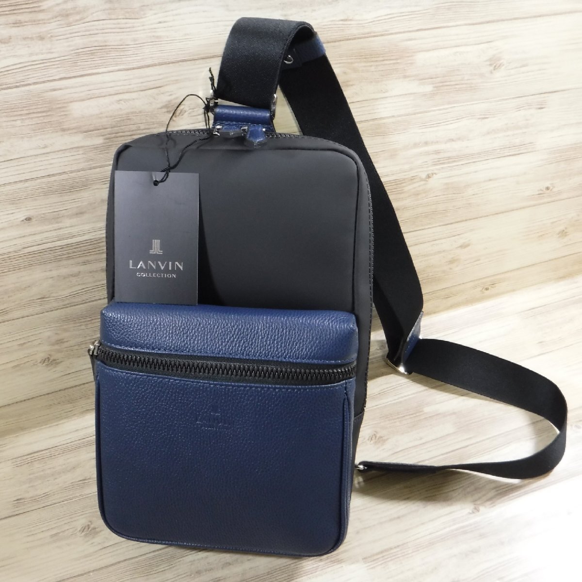 BB649 ランバン コレクション LANVIN 定価27500円 新品 ワンショルダーバッグ 黒 × ブルー ボディバッグ 高耐久撥水レザー 284911 エクラ