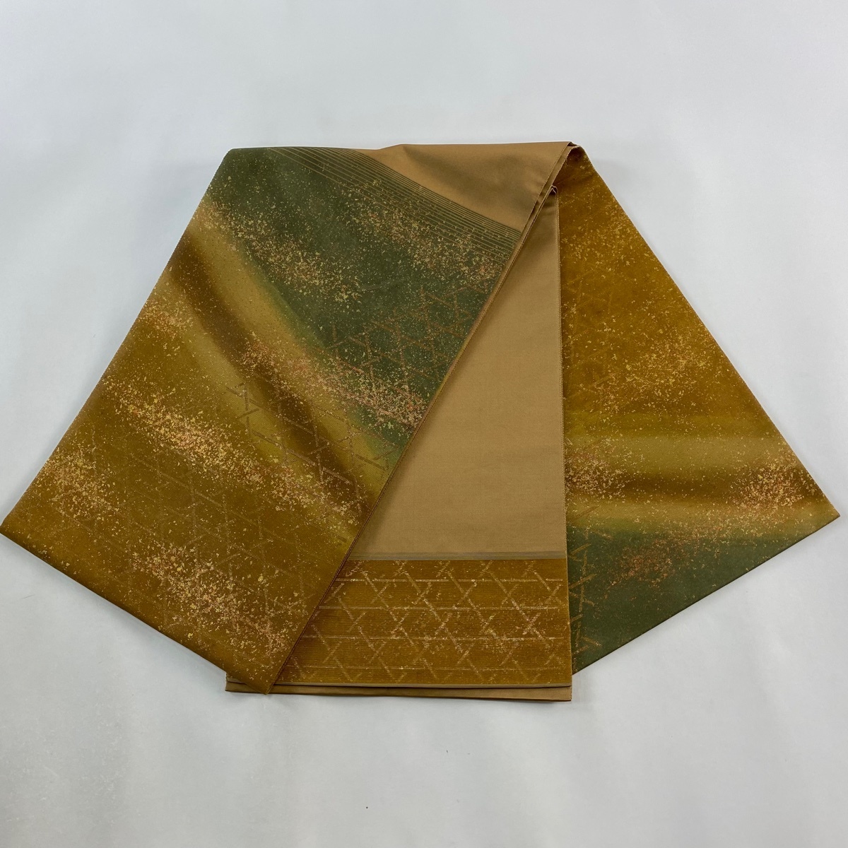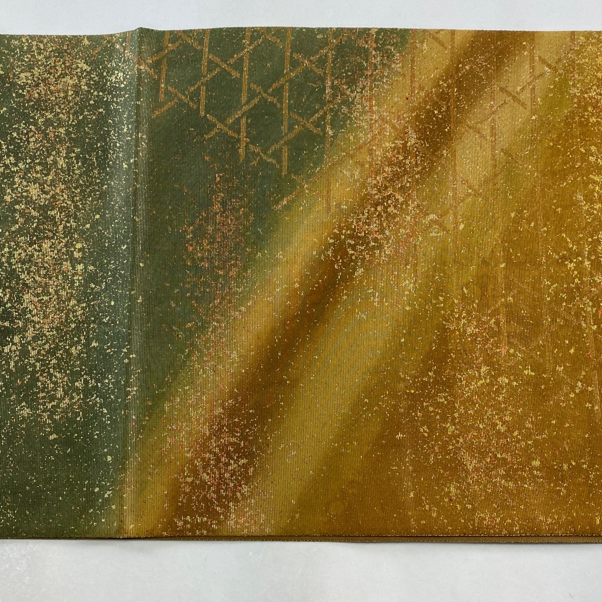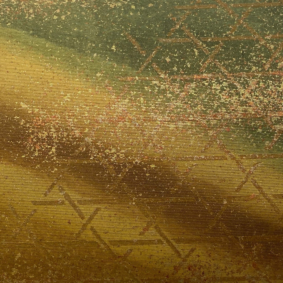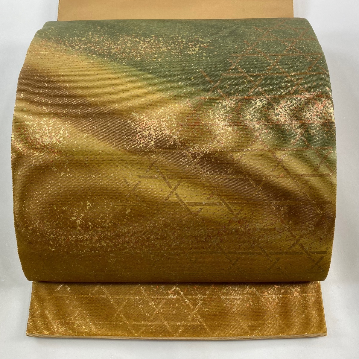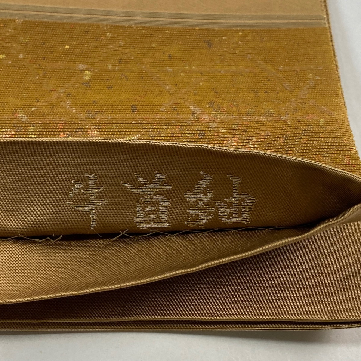 | 袋帯 秀品 籠目 縞 箔 茶色 お太鼓柄 正絹 【中古】 |
