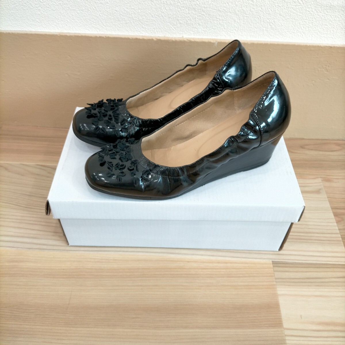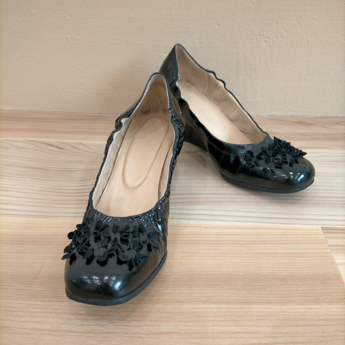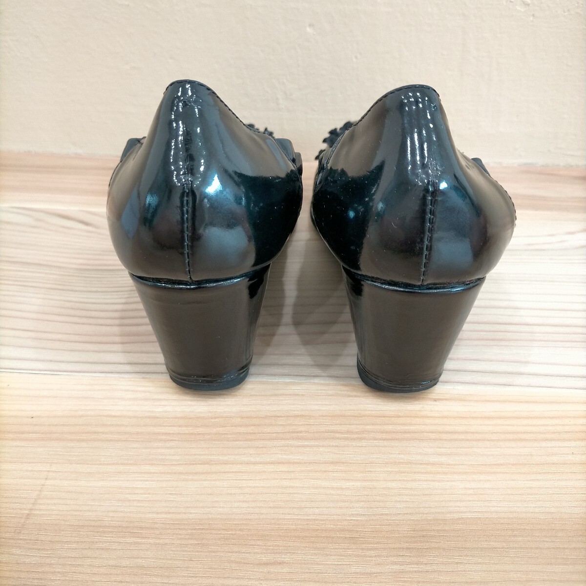 パンプス ヒール エナメル 黒 ブラック 23.0cm