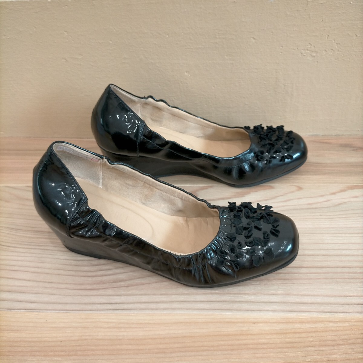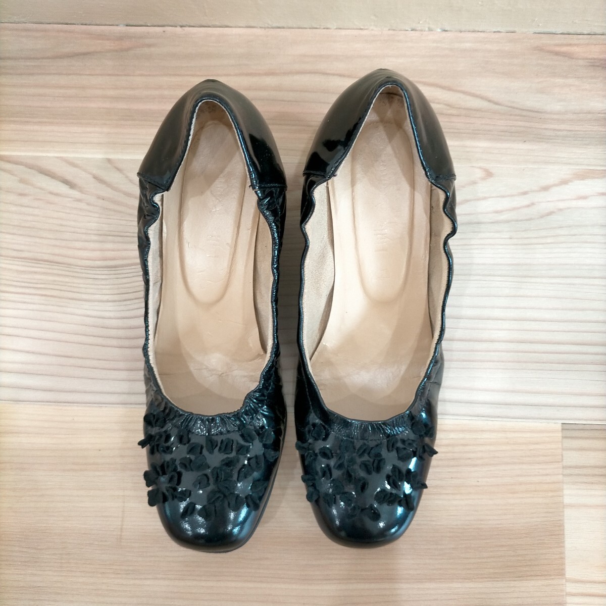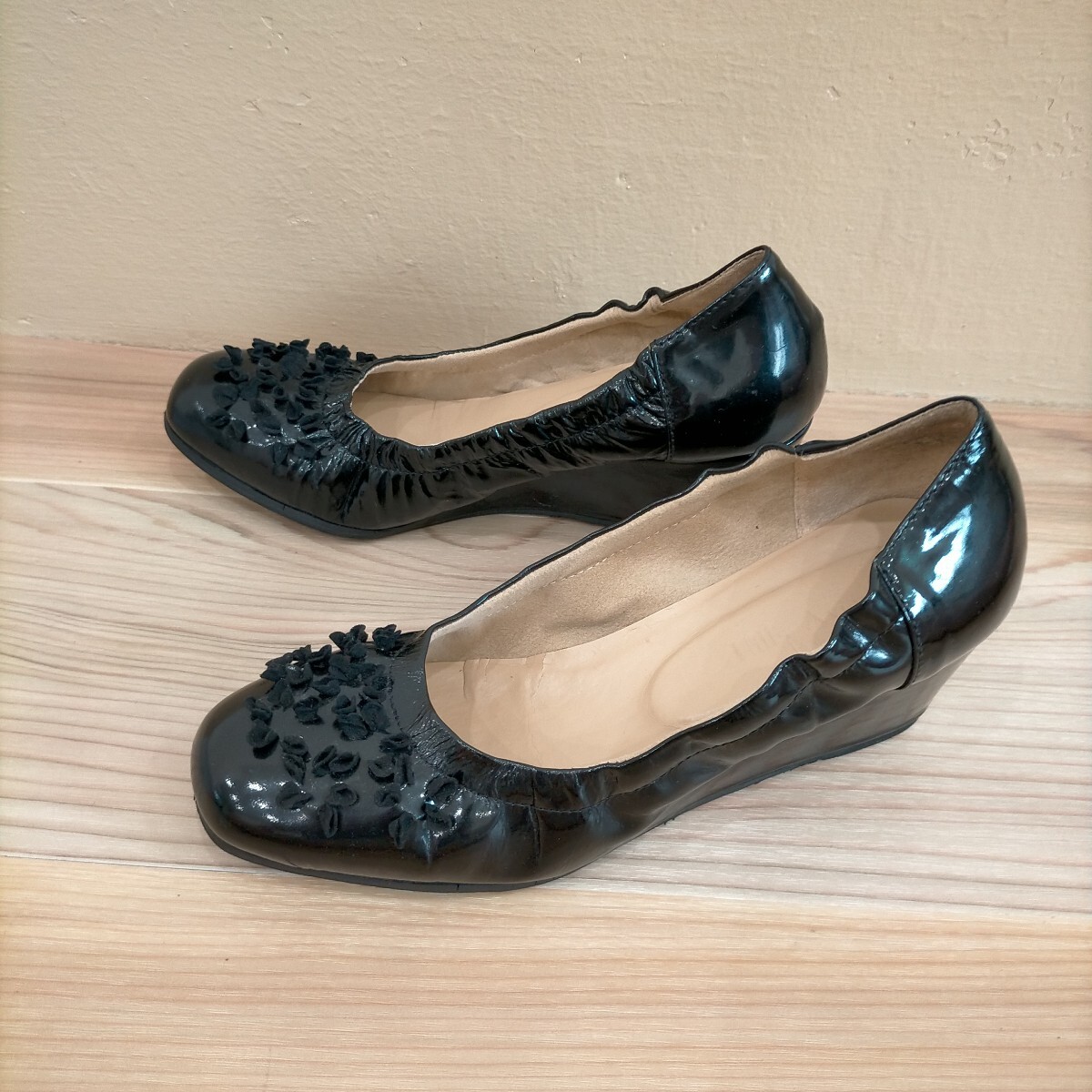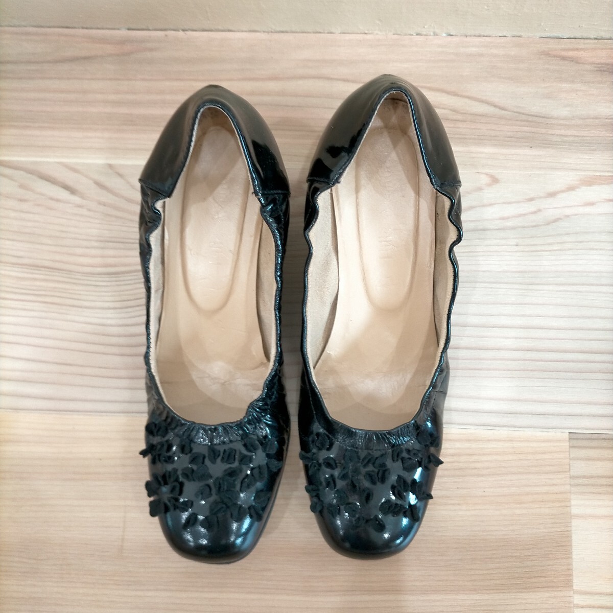 パンプス ヒール エナメル 黒 ブラック 23.0cm