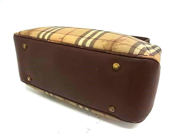 1円 BURBERRY バーバリー ノバチェック PVC×レザー ハンドバッグ トートバッグ レディース ベージュ系×ブラウン系 FU0767
