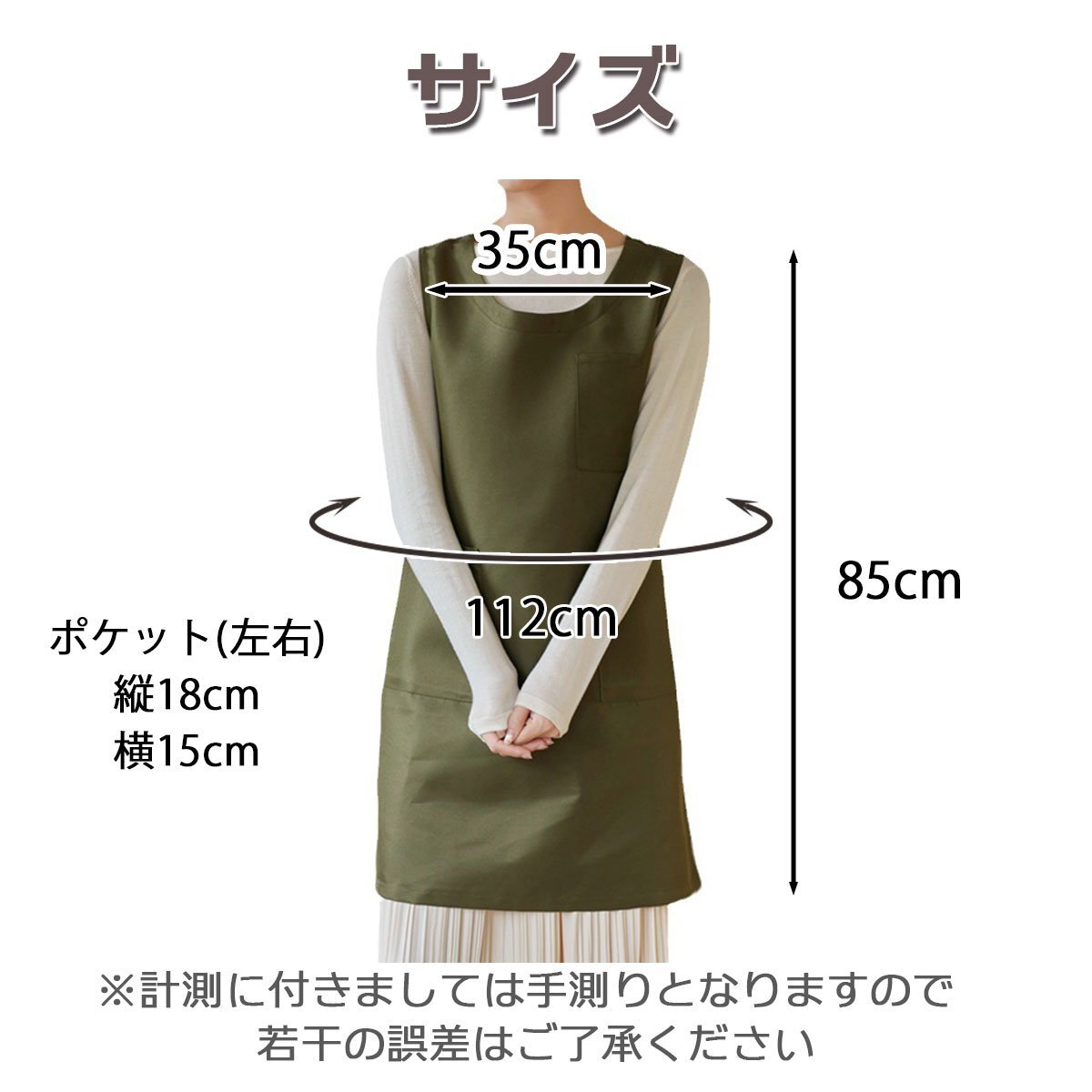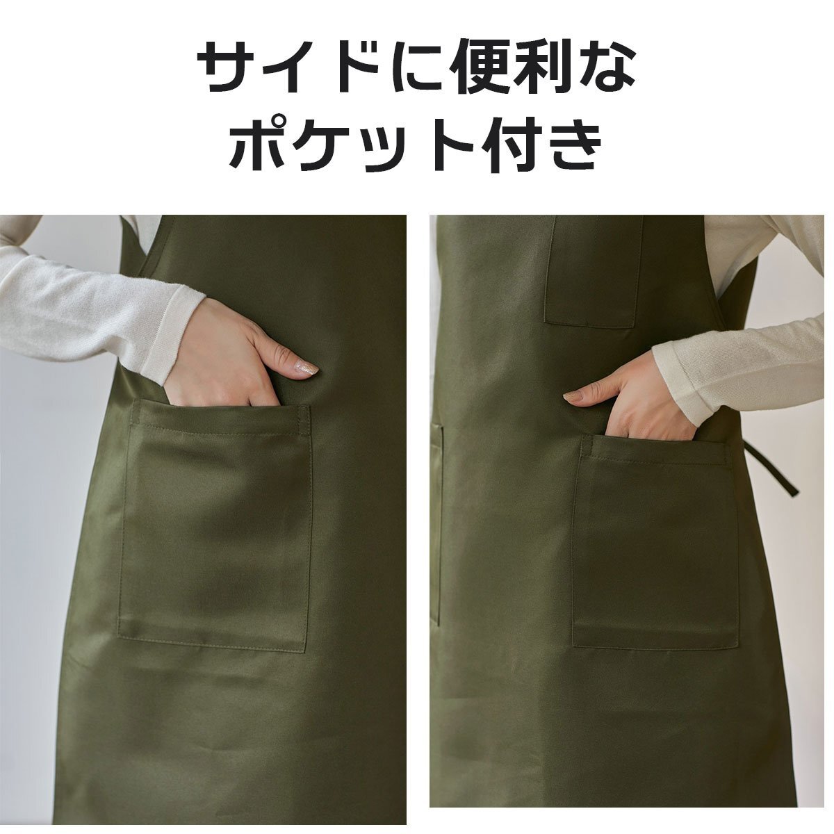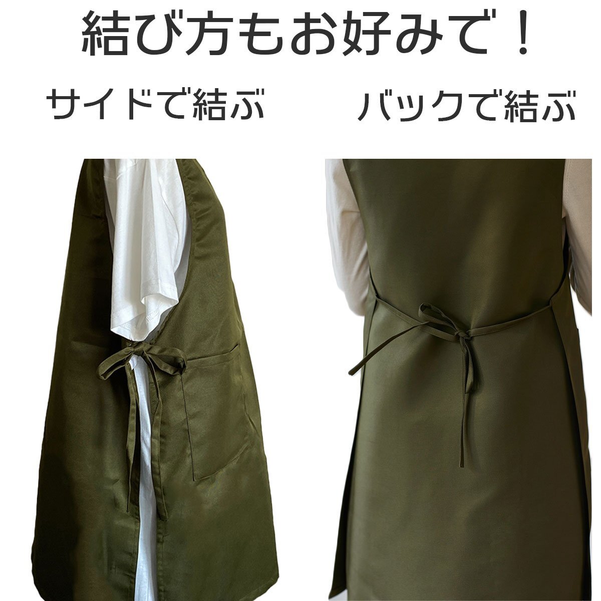 中に厚手の服を着ても動きやすい、ゆったりなサイズ感。ご家庭内でのご使用はもちろん、ガーデニング、料理教室、カフェ、雑貨店、飲食店など様々なシーンでご使用頂けます。