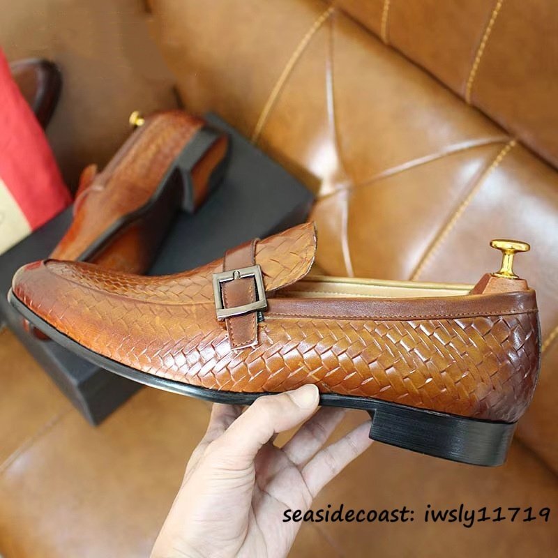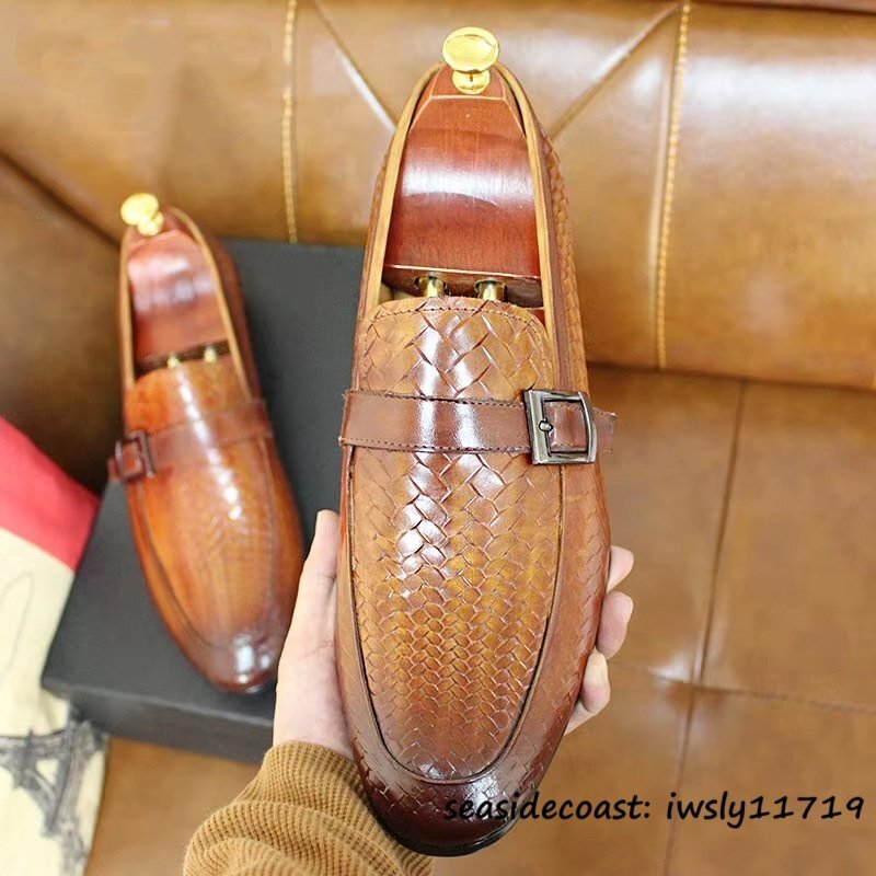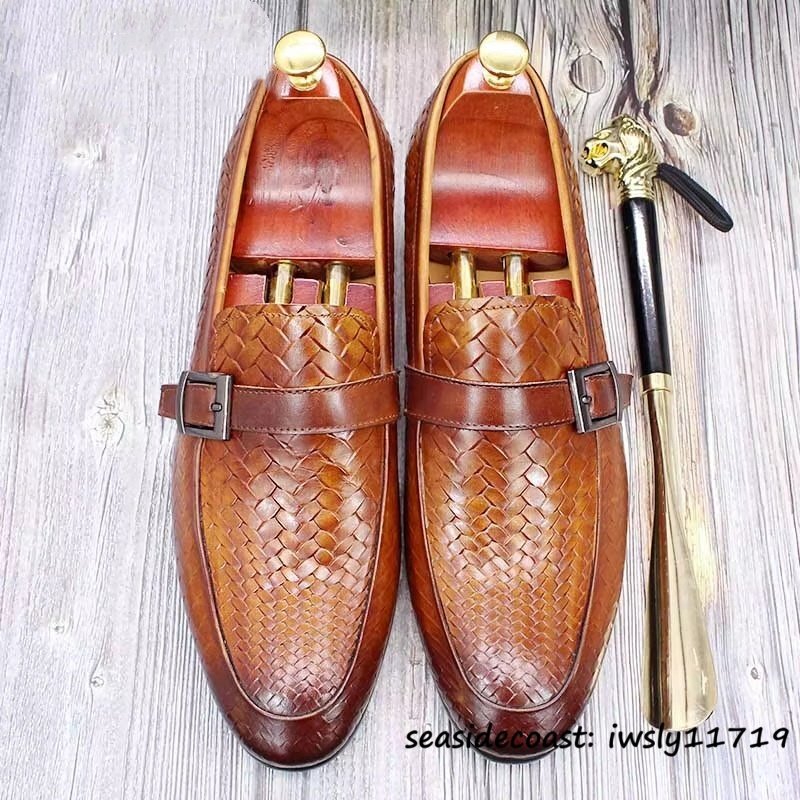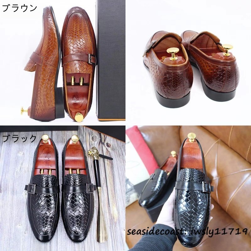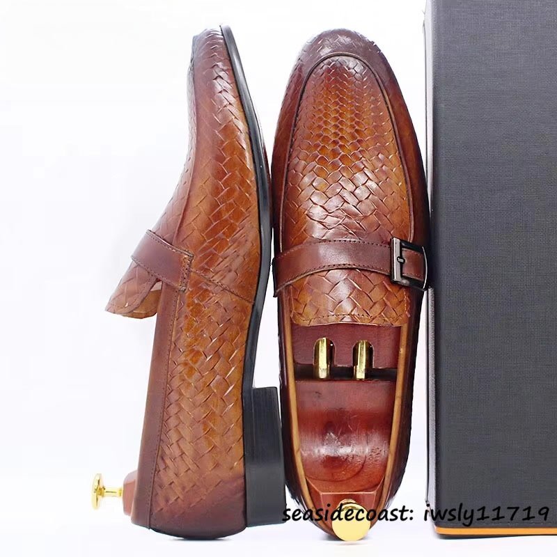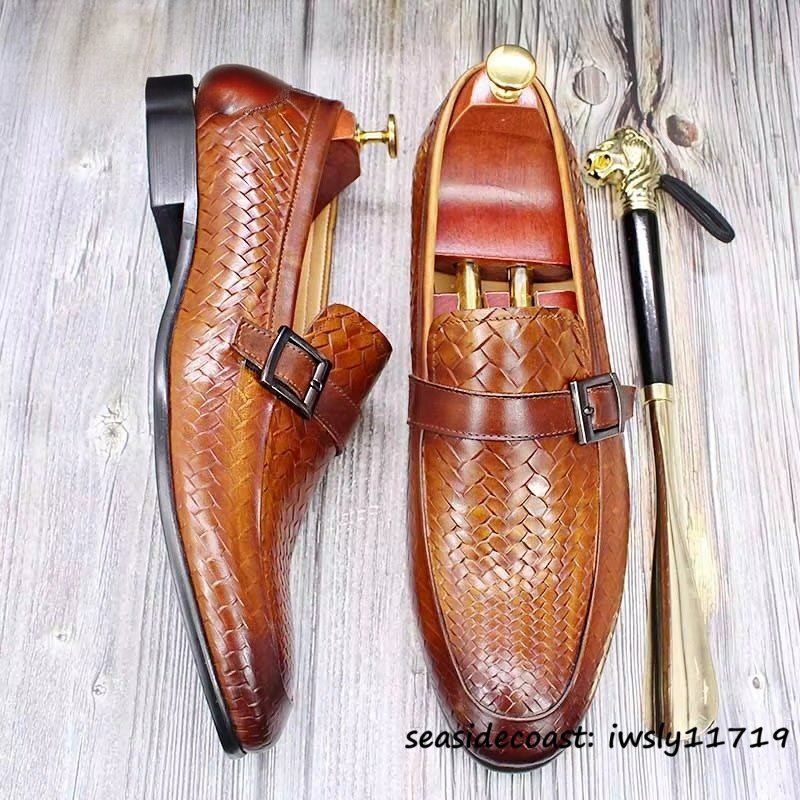 最高級■新品 モンクストラップ ビジネスシューズ メンズ 本革レザーシューズ 職人手作り 紳士靴 超希少革靴 牛革 結婚式 ブラウン 25.5cm