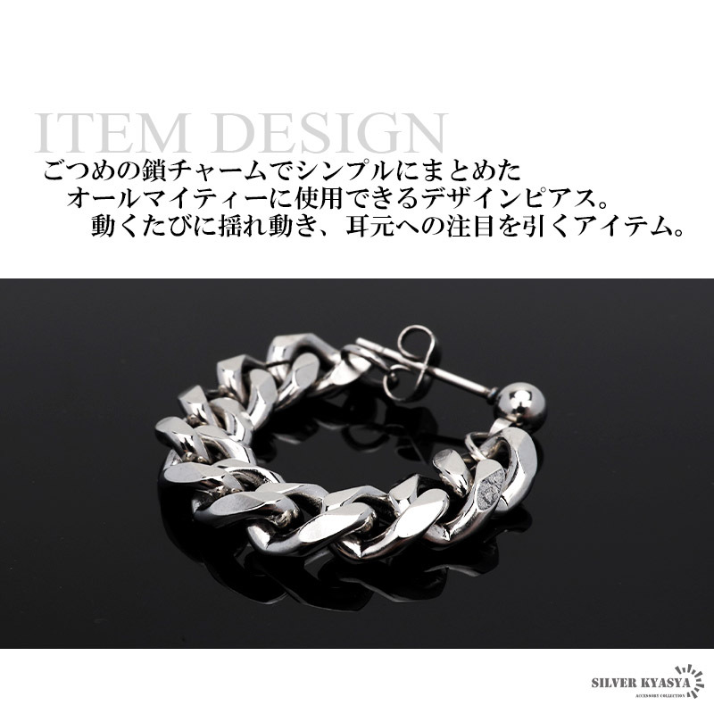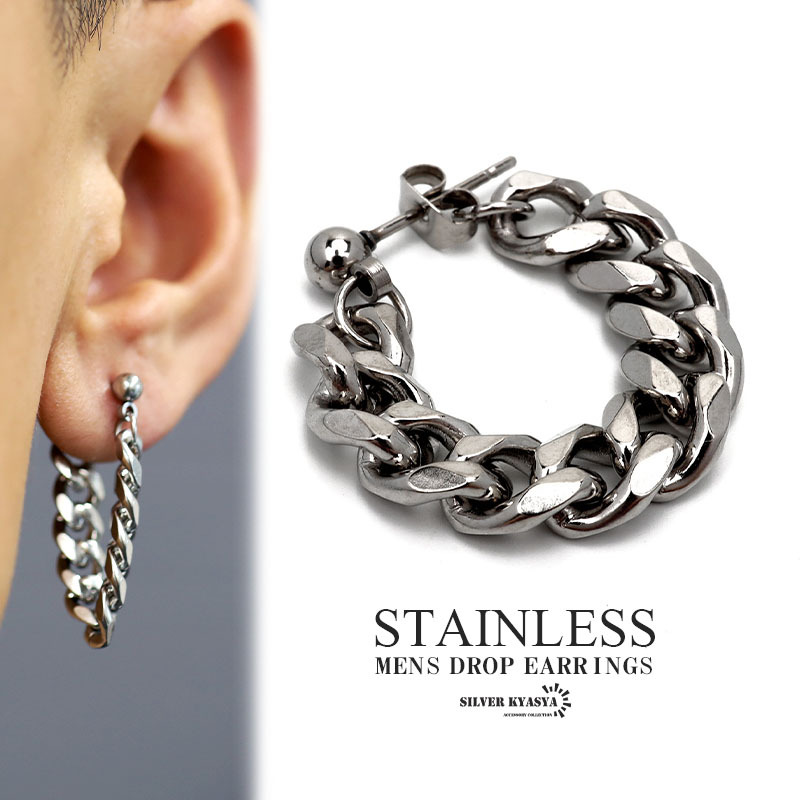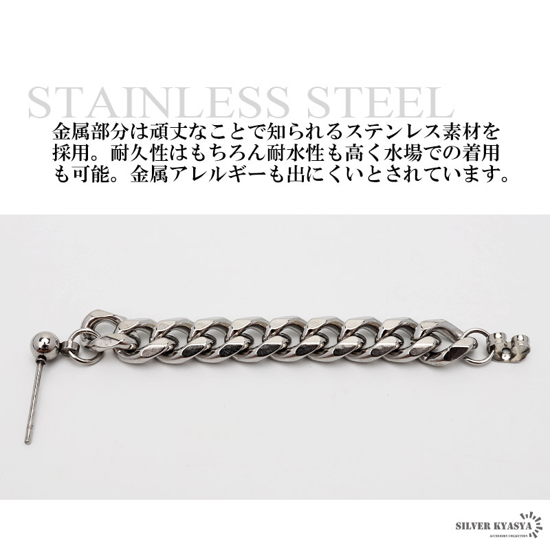 ドロップピアス メンズ 喜平チェーン ステンレス 重厚感 幅7mm 韓国 スタッドピアス ボディピアス 片耳用 金属アレルギー