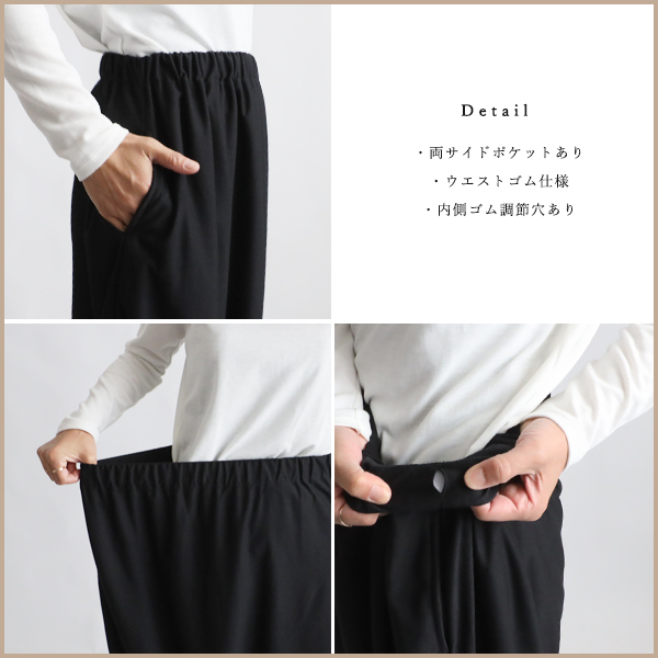 ウエスト楽々ゴム仕様(内側ゴム調節穴付き)も嬉しいポイント。