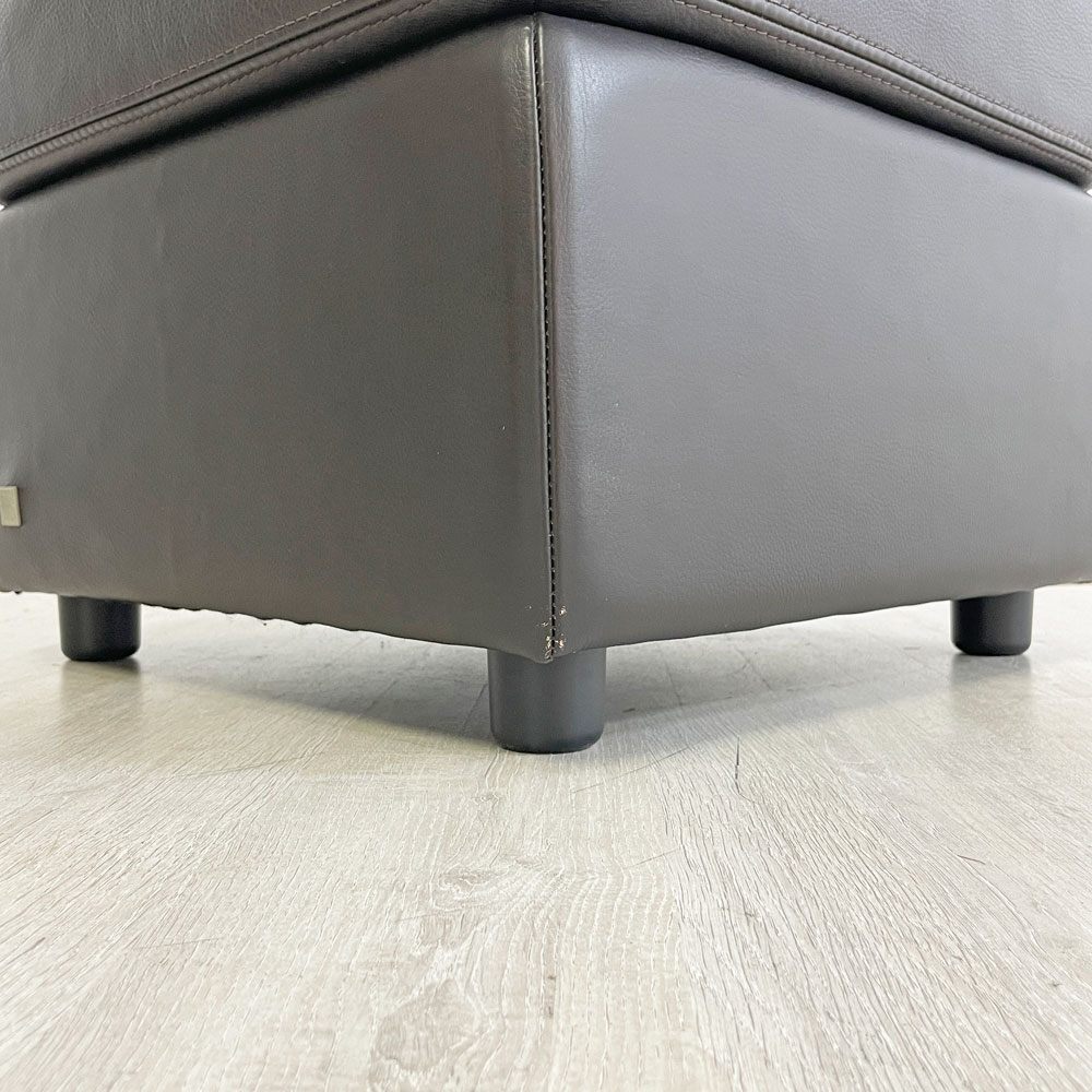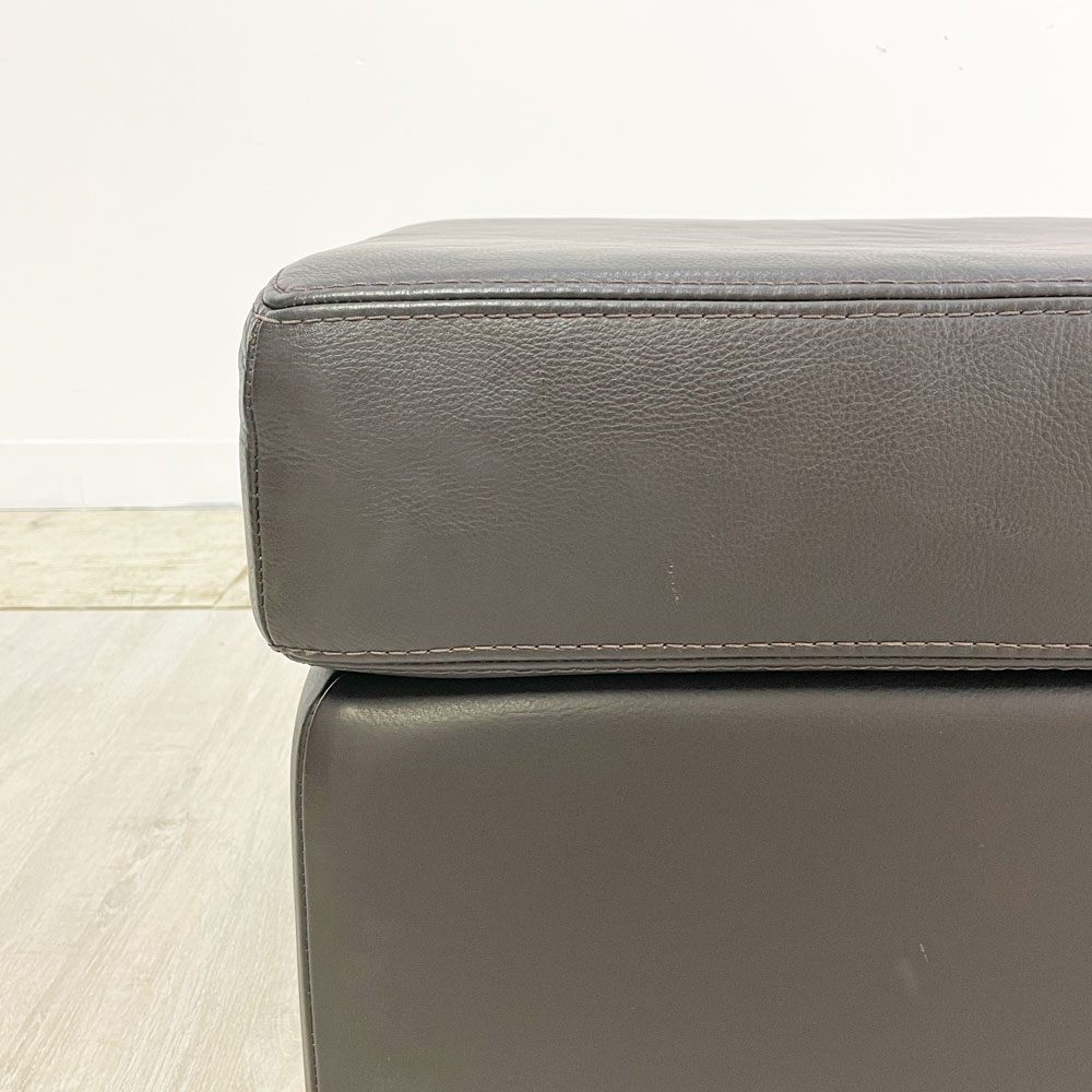 | コメント | 北欧をはじめ、イタリアやドイツなど各国の名作家具や照明、オリジナルのキッズファニチャーや雑貨類など幅広い商品展開で人気のショップ “ アクタス ACTUS ” 。 こちらはアクタスがプロデュースし、ドイツの高級ブランド “ ムスタリング Musterring ” が製造を手掛けた、ギャラリーMシリーズ『オットマン』になります。 シンプルで無駄のないデザインは、インテリアに溶け込みながらも存在感を放ちます。 深みのある艶と滑らかな手触りは、本革ならではの魅力。使い込む程に柔らかさと光沢が増し、年月と共に味わいが深まっていきます。座面は適度なクッション性を備え、ソファと合わせてフットレスト使えば、足元から頭まで全身をリラックスへと導きます。 四角いフォルムと落ち着いたカラーリングは幅広いテイストにマッチ。リビングや書斎、寝室など様々な空間に調和します。上質な素材と使い勝手の良さが融合したギャラリーMオットマンは、長く愛用出来るパートナーとして暮らしに寄り添います。 ※当ショップは、主にリサイクル品を取り扱っております。基本的にUSED品である事をご理解頂き、ご入札をご検討下さいませ。 |