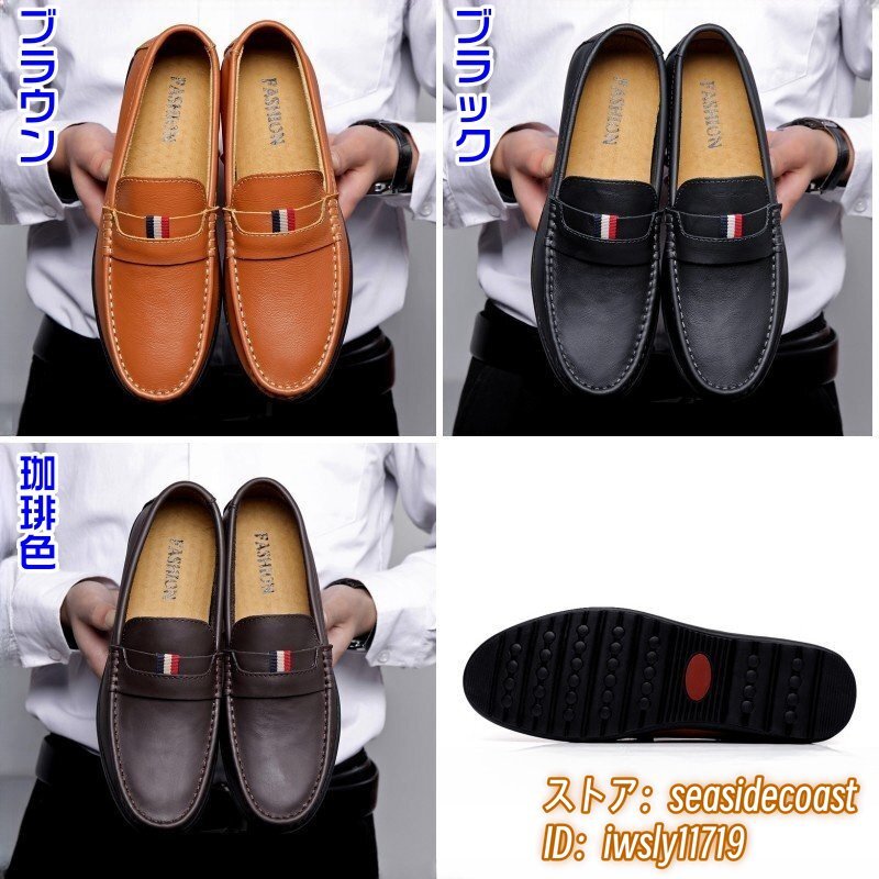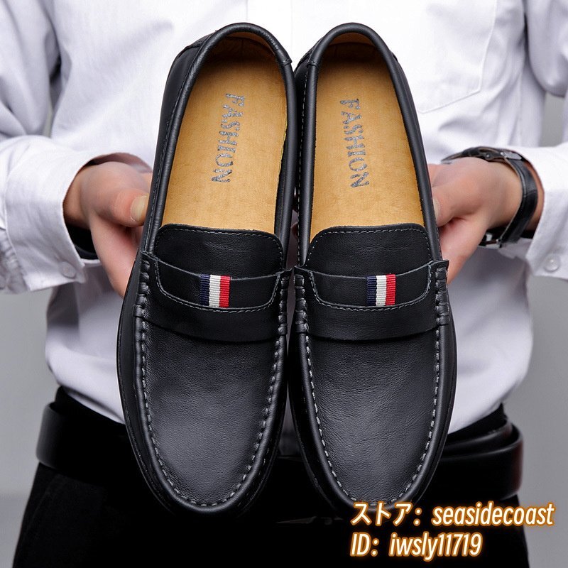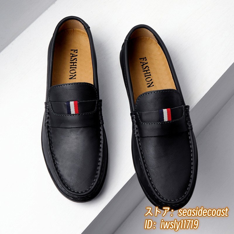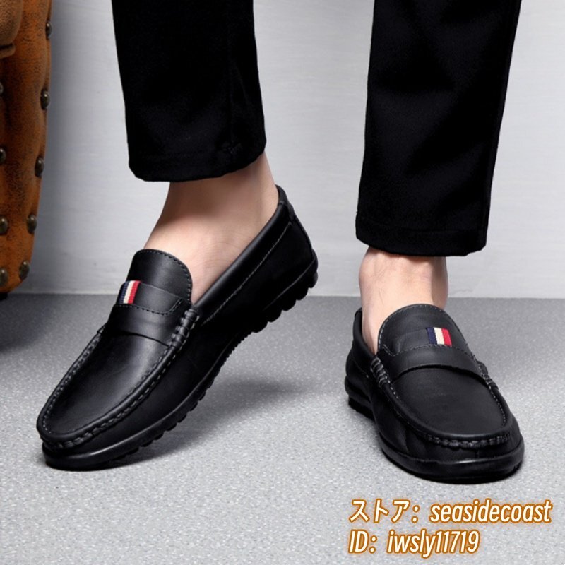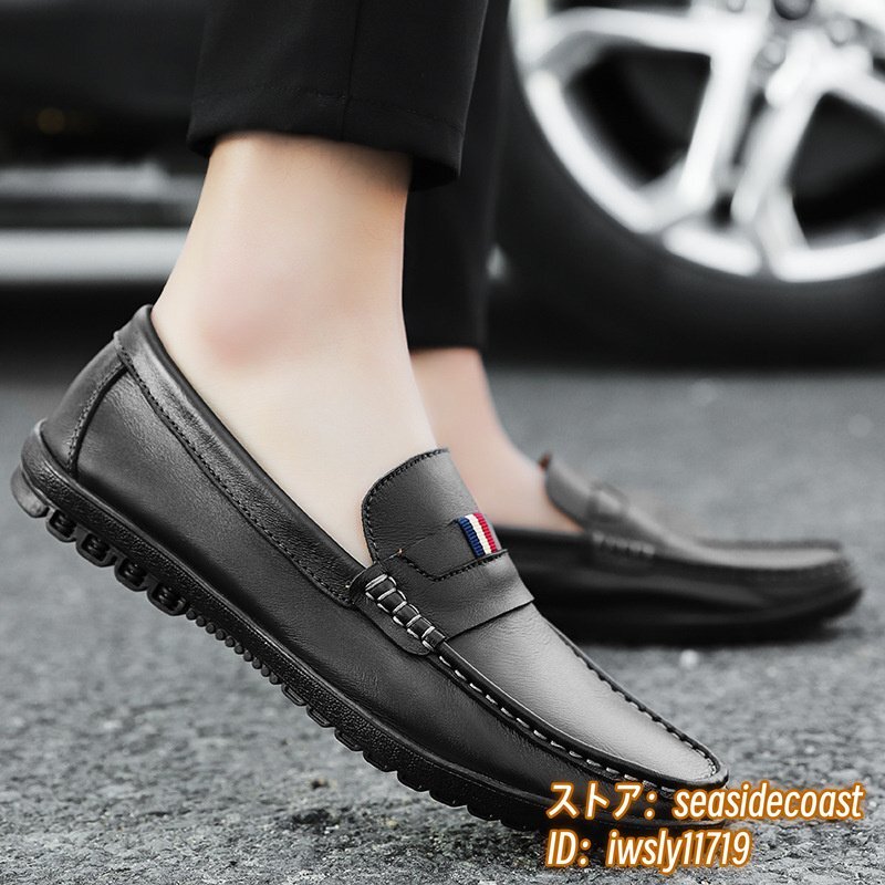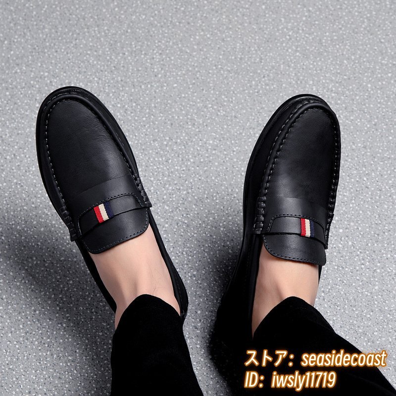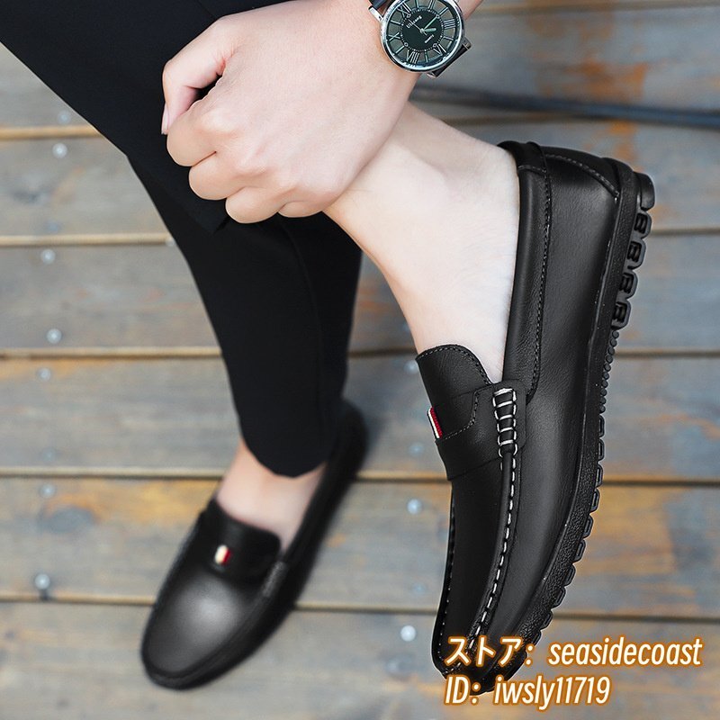 ローファー スリッポン メンズ 新品 革靴 本革レザーシューズ ドライビングシューズ ビジネス 軽量 防滑 牛革 紳士靴 通気 ブラック 25.0cm