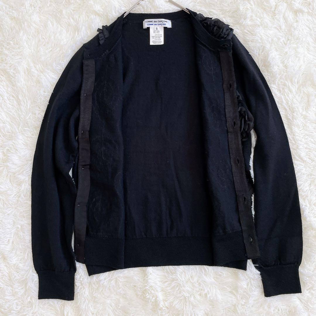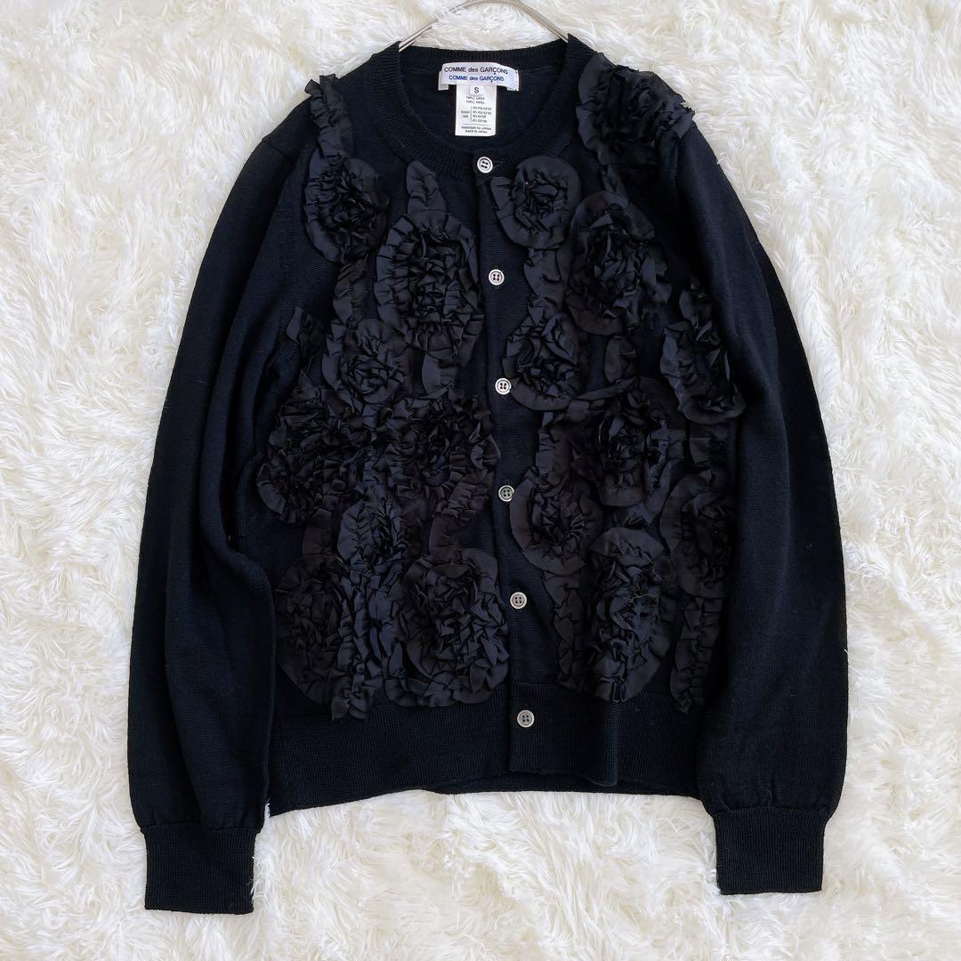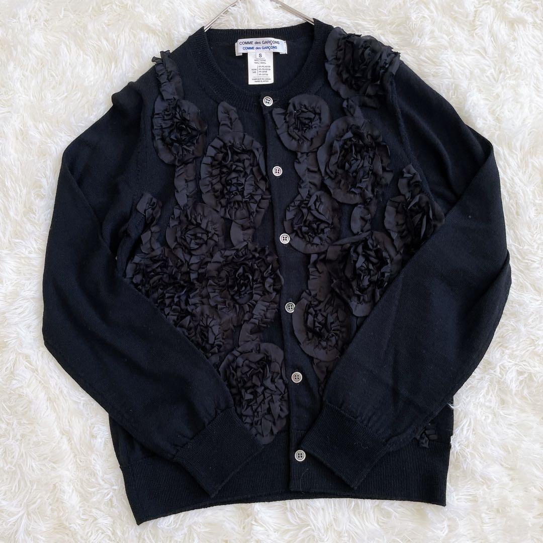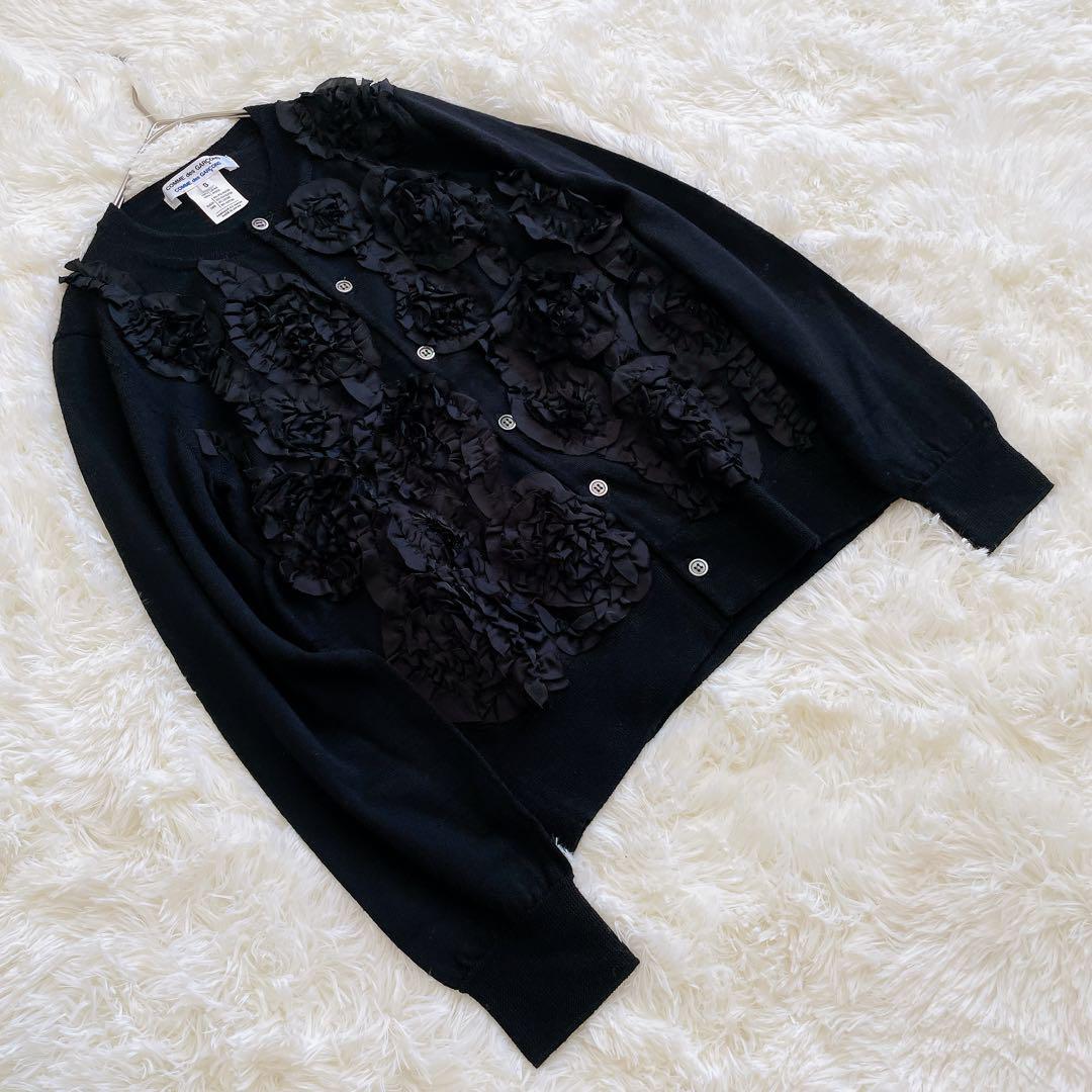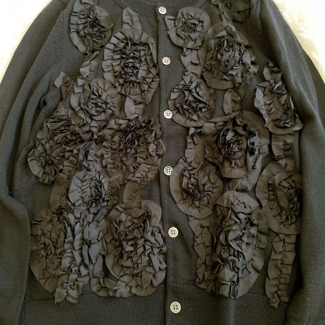 コムデギャルソン コムデギャルソン COMME des GARONS 薔薇 バラ フラワーモチーフ カーディガン ニット クルーネック 総柄 装飾 デザインモチーフ 花柄 ブラック 黒 レディース モード 正規品