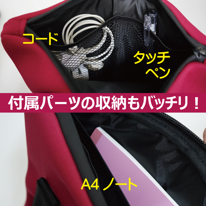 内ポケット付きで、ノートやペン・充電コード類もスッキリ収納できます!