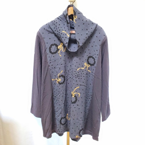 ●商品名(タイトル):#anc Ts コレクション 詩仙堂 ヒトシタムラ チュニック 青 グレー ちりめん ドルマン 切替 リボン柄 レディース [955058]