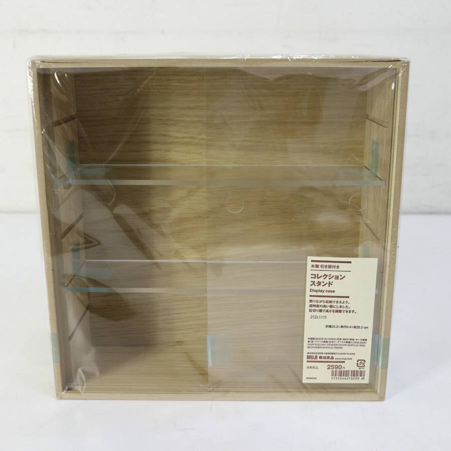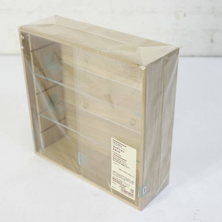 未開封 無印良品 木製 引き扉付き コレクションスタンド 2024年製 オーク突板 コレクションケース 小さなフィギュアなど★256v22