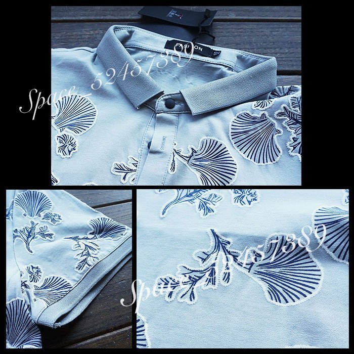 在庫処分1555※52【通常M】■新品*FASHION 夏 リゾート 爽やか 涼しげ 花 刺繍 アロハ 半袖シャツ