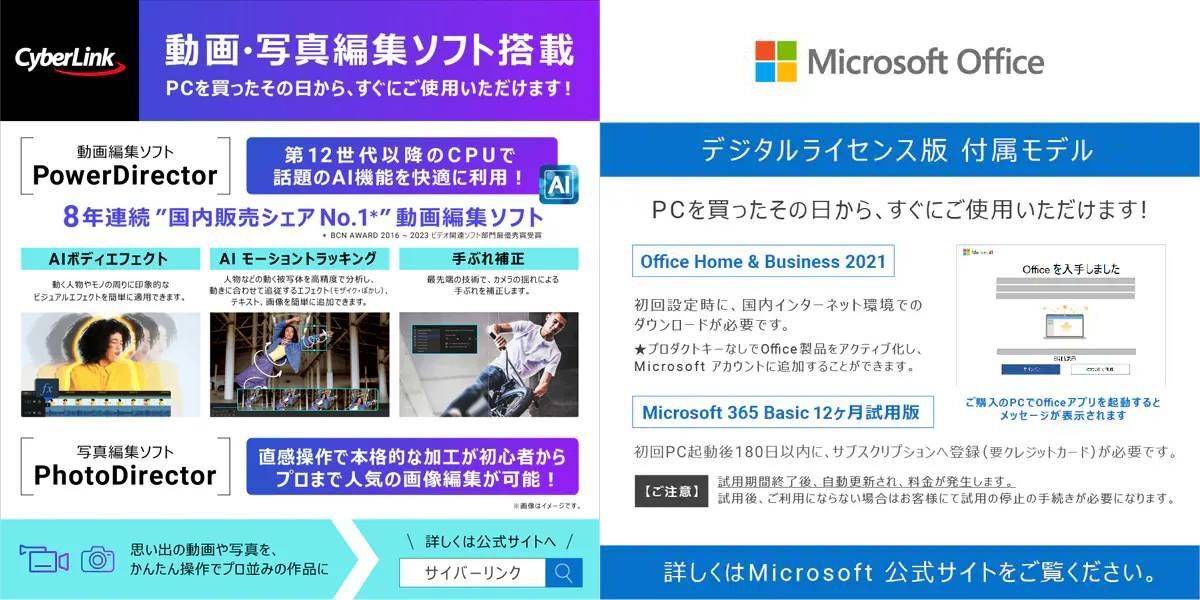 | 商品説明 | DELL(デル)モバイルノートパソコン MI583-DWHBCP [Inspiron 13 5330/13.3型/Core Ultra 7 プロセッサー 155H/WQXGA(2560×1600)/ メモリ 16GB/SSD 1TB/Windows 11 Home/Office Home & Business 2021 +Microsoft 365 Basic 12ヶ月試用版(デジタルライセンス版)/ライトピンク] です。 国内大手家電量販店(正規販売代理店)購入の新品未開封品です。 メーカー保証書未記入に店舗保証書(販売店保証明細)付属。 即決です。消費税はかかりません。 2025年9月から1年保証付。1点限りになります。 ◆製品 インテル Core Ultra プロセッサー搭載で、 優れた、妥協のない体験のために専門的に設計された インテル Evo エディションの13.3インチ プレミアムモバイルノートパソコン。 魅了するスタイルの薄型軽量デザインで、 大音量のサウンドと目を見張るビジュアルをお楽しみいただけます。 ■心揺さぶる映像体験を。 インテル Core Ultra 7 プロセッサー 155H搭載の13.3インチ ノートパソコン。 インテル Arc GPU、NPUを搭載したハイブリッド・アーキテクチャーで 高度なAI 機能をサポート。 また、新たに E Coreを実装したSoCタイルを採用することで、 バッテリー寿命とパフォーマンスの最適なバランスを特徴とする プレミアムなノートパソコン体験を提供します。 ■サウンドに包まれる感覚を味わう 刷新されたサウンドに浸りましょう。 Dolby Atmosは、奥行き、鮮明さ、細部を表現し、 包み込まれる空間オーディオ体験を生み出します。 ※Dolby Atmosでエンコードされたコンテンツとオーディオが必要です。 ■より大きな画面で真に迫るビジュアル Dolby Visionのハイ ダイナミック レンジ(HDR)テクノロジーによる 極めて鮮明な色彩とシャープなコントラストで 映画やテレビ番組をストリーミングできます。 16:10のディスプレイで、高さが拡張された画面により多くのコンテンツを表示できます。 DC Dimmingは画面のフリッカーを軽減し、Dell ComfortView Plusテクノロジーにより、 リアルな色彩を損なうことなく有害なブルー ライトを低減します。 ■没頭できるビデオ チャット FHD解像度のカメラと、AIバックグラウンド ノイズ リダクション ソフトウェアを使用した デュアル マイクの鮮明なオーディオで、友人や家族とつながれます。 カメラは手動のシャッター付きでプライバシーを保護できます。 ■充実した機能 パネルオープン センサー搭載で、電源ボタンを押すことなく 素早くノートパソコンの電源を入れることができます。 また、急速充電機能は充電時間を短縮することができ、 急なバッテリー切れも安心です。 ■スムーズなエアフロー デュアル ファンとヒート パイプで放熱を最適化しているため、 作業中に高速なパフォーマンスが中断されることがありません。 ■より持続可能な未来を実現 Inspiron 13は持続可能な素材を使用し、 100%リサイクルおよび再生可能な素材から作られた梱包材で出荷しています。 ■安心の国内対応!1年間プレミアムサポート付き ご購入から1年間のメーカー保証期間内であれば、 ハードウェアとソフトウェアともに国内のDell製品専任担当者が 24時間365日サポートするので安心です! 例えばパソコンの調子が悪い、 インターネットへの接続の方法が解らないなど お客様がお困りの時にご相談ができます。 修理が必要な場合は専門エンジニアによる翌営業日出張修理も可能です! サイバーリンクの動画・写真編集ソフトの使い方もサポートしています! 【仕様】 ●カラー:ライトピンク ●液晶ディスプレイ: 13.3インチ(2,560x1,600)広視野角非光沢液晶 =WQXGA(2560×1600) ●CPU:インテル Core Ultra 7 プロセッサー 155H (シリーズ1,16コア/22スレッド,24MBキャッシュ,最大 4.8 GHz) ●標準メモリー:16GB(オンボード) ●最大メモリー:- ●メモリースロット数(総数/空き):- ●ストレージ:1TB/SSD(PCIe) ●光学ドライブ:- ●グラフィックス:Intel Arc グラフィックス ●ワイヤレス:Wi-Fi 6E(a/b/g/n/ac/ax)+Bluetooth 5.2 ●有線LAN:- ●OS:Windows 11 Home ●オフィスソフト有:Office Home&Business 2021 +Microsoft 365 Basic 12ヶ月試用版(デジタルライセンス版) ●サウンド入出力:ヘッドフォン・マイク(兼用)×1 ●カメラ: 有 ※FHD(1080p/シャッター付)、デジタルマイク付 ●メモリーカードスロット:- ●USBポート数:Thunderbolt 4×2(PowerDelivery&DisplayPort対応)、 USB 3.2 Gen1 Type-A×1 ●ディスプレイ出力:DP(Thunderbolt 4兼用)×1、HDMI(1.4)×1 ●Webカメラ:FHD(1080p/シャッター付)、デジタルマイク付 ●サポート/保証:1年間プレミアムサポート (24時間365日国内電話サポート/引き取り・出張修理) ●重量:約1.24Kg ●本体寸法 幅×奥行き×高さ(mm): 296.68×213.5×14.35~15.65 ●その他:バックライトキーボード、マカフィー セキュリティーソフト(30日間試用版)、 Cyberlink PowerDirector&PhotoDirector(ダウンロード版) |