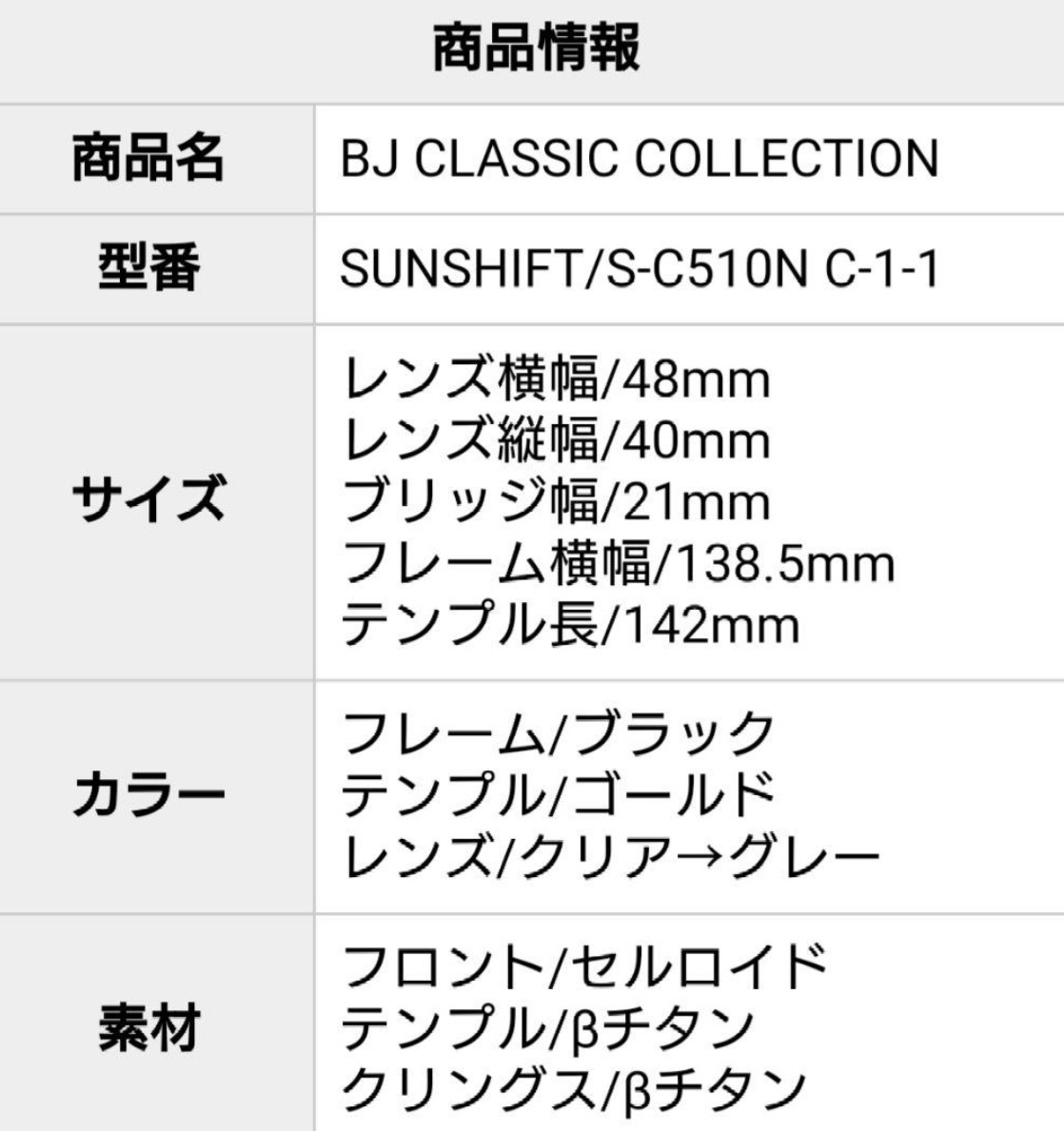 型番 SUNSHIFT/S-C510N C-1-1