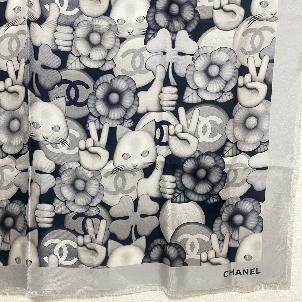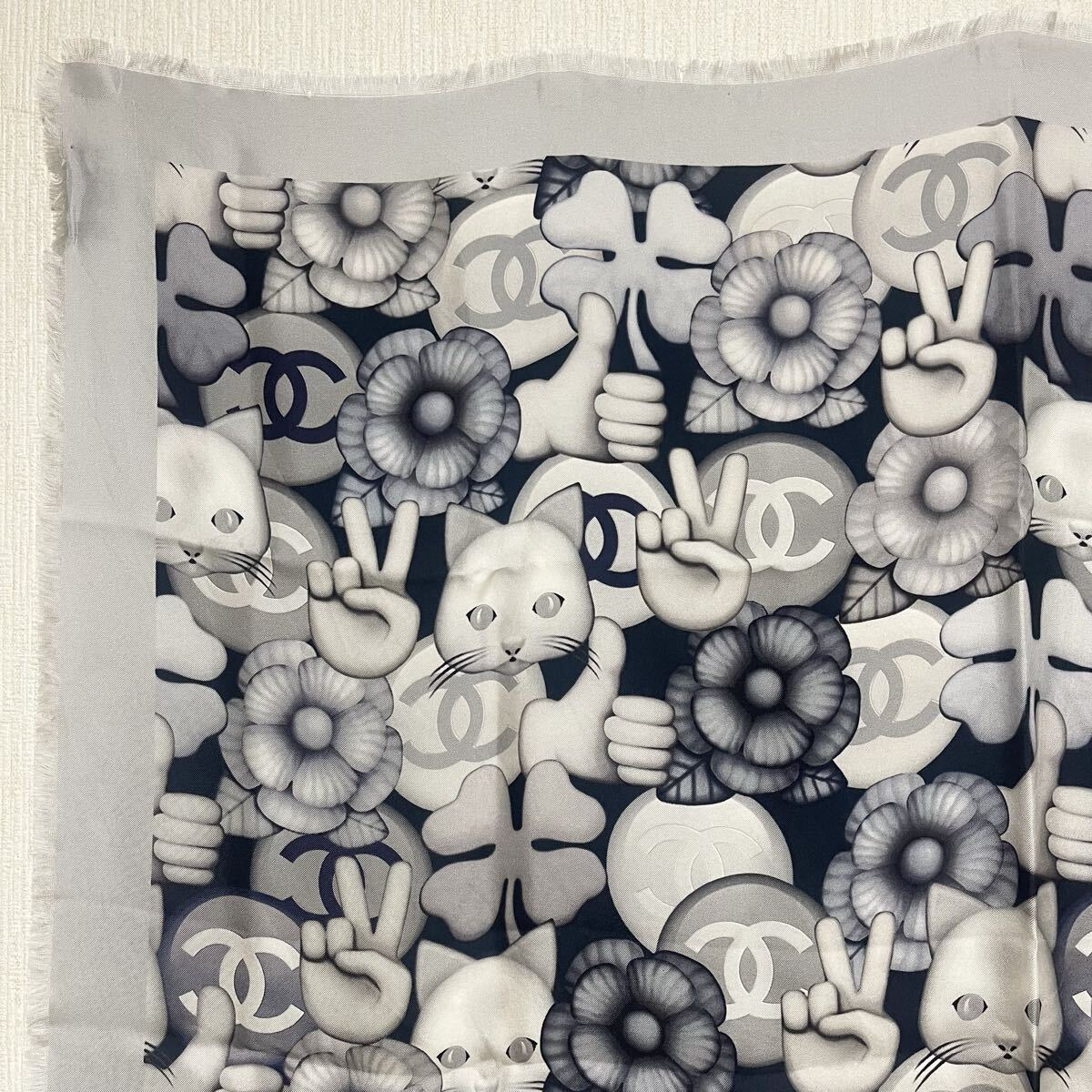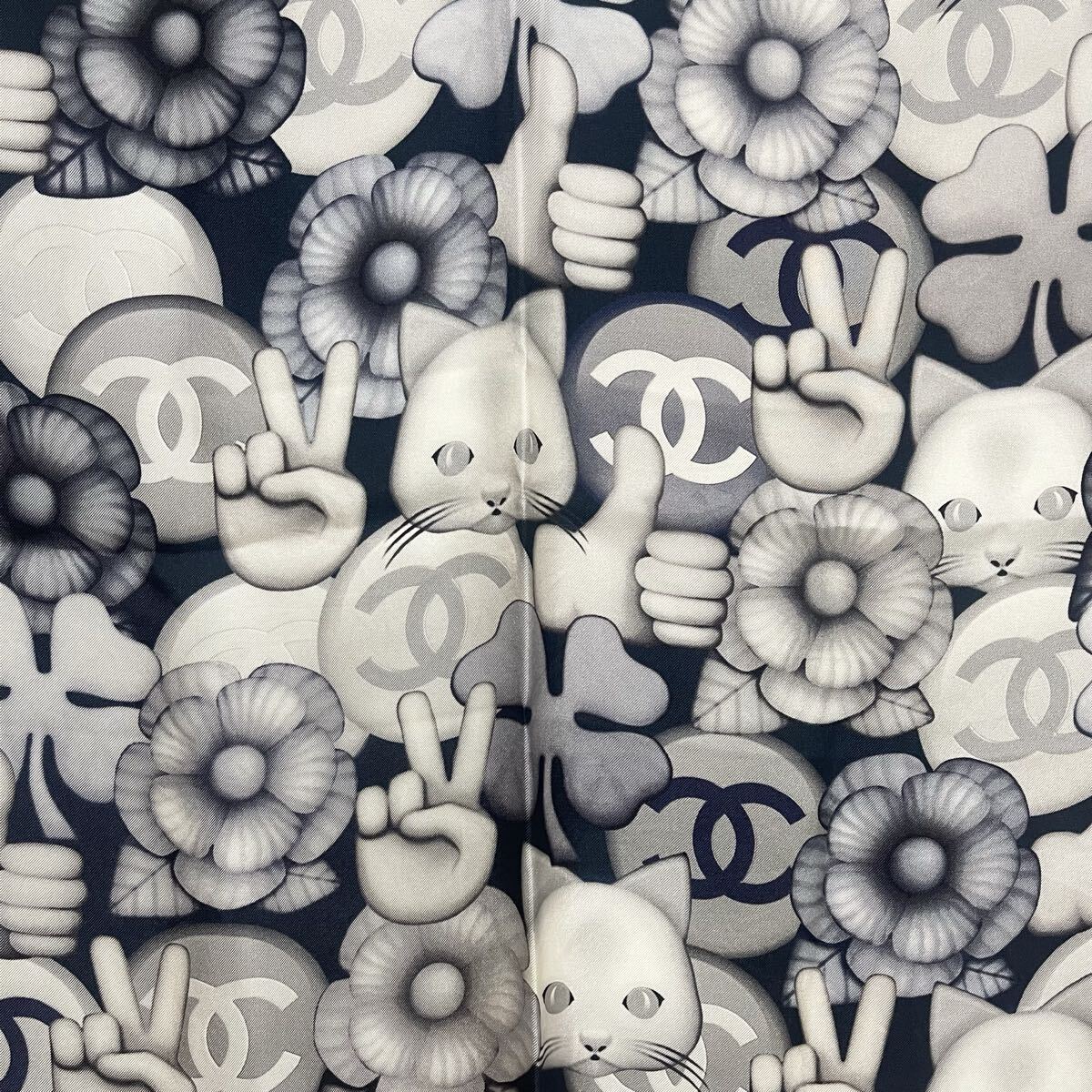 CHANEL シャネル スカーフ シュペット キャット カメリア ココマーク 猫 アイコン クローバー シルク