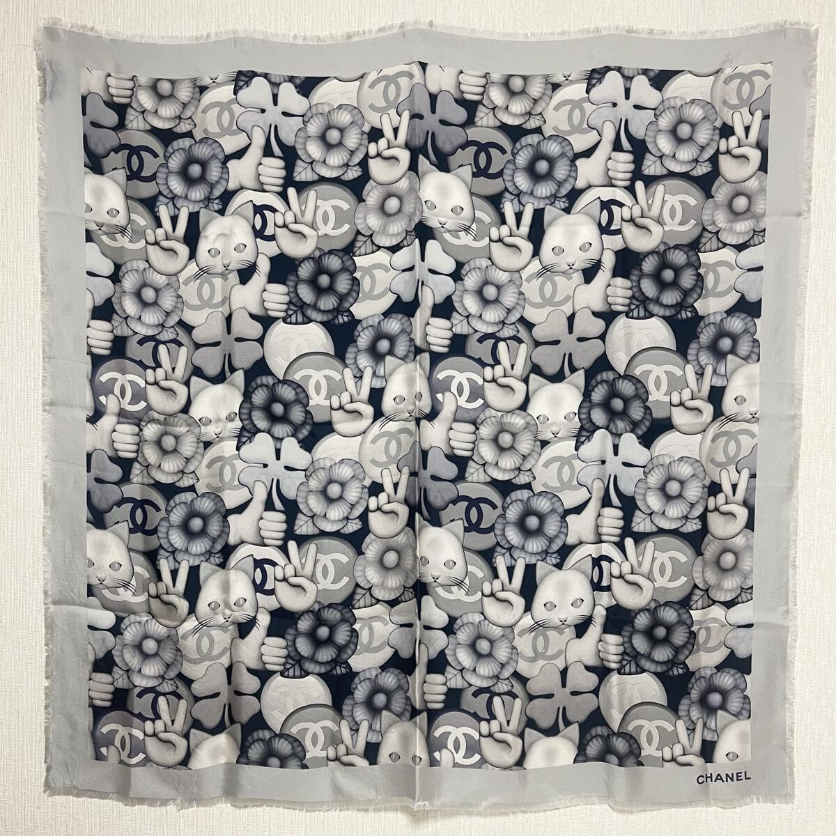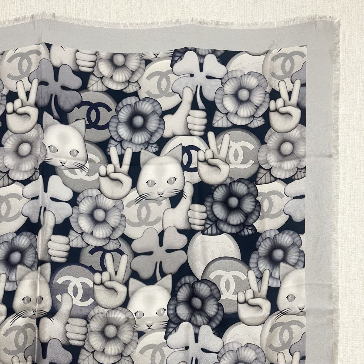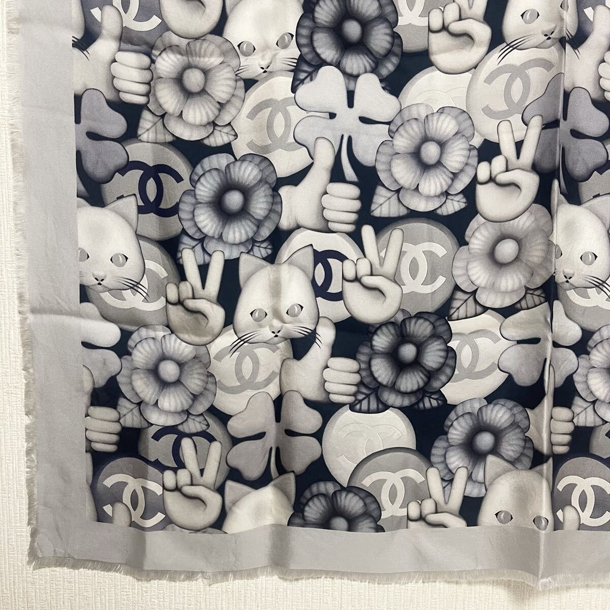 CHANEL シャネル スカーフ シュペット キャット カメリア ココマーク 猫 アイコン クローバー シルク