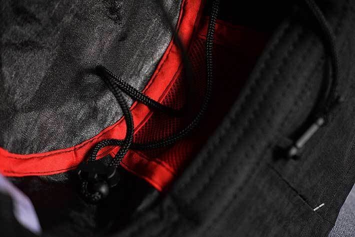 ドローコードでサイズ調整可能、落下防止コードは取り外し可能。