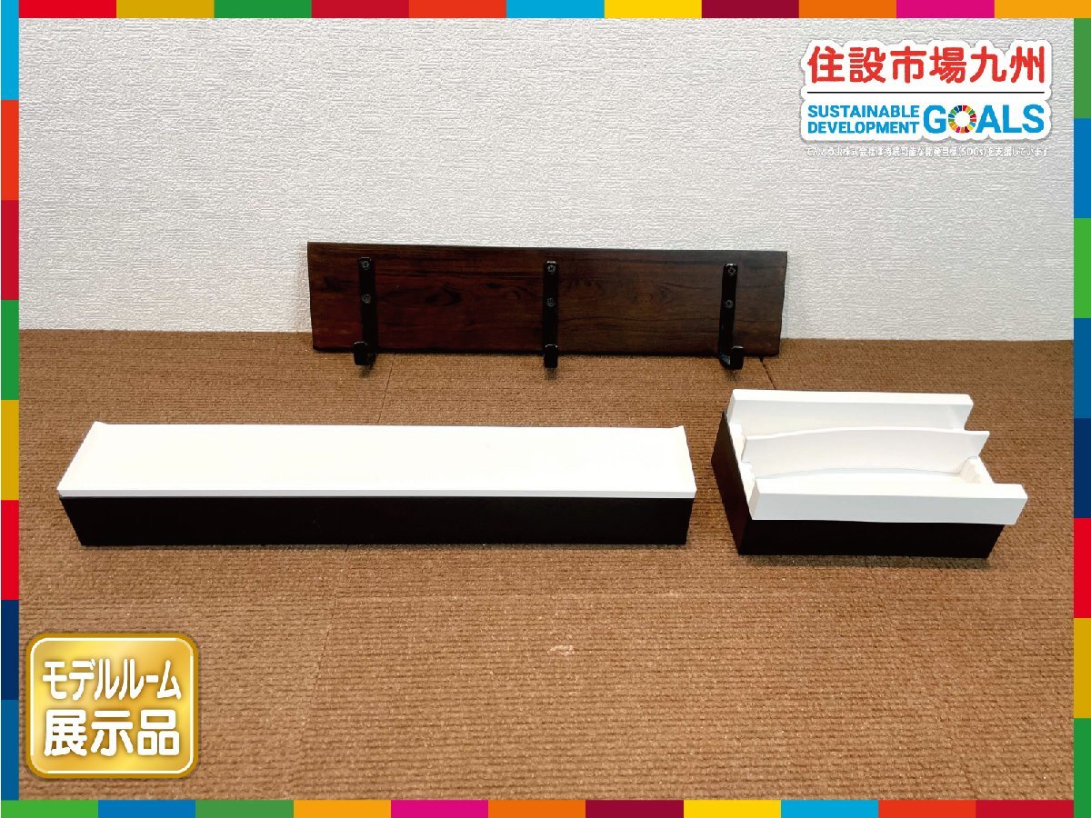 【福岡】壁掛けフック & キッチンツール 小物置き マグネット式◆棚◆フック:W380 H92 D55◆モデルR展示品◆CR707_Ts