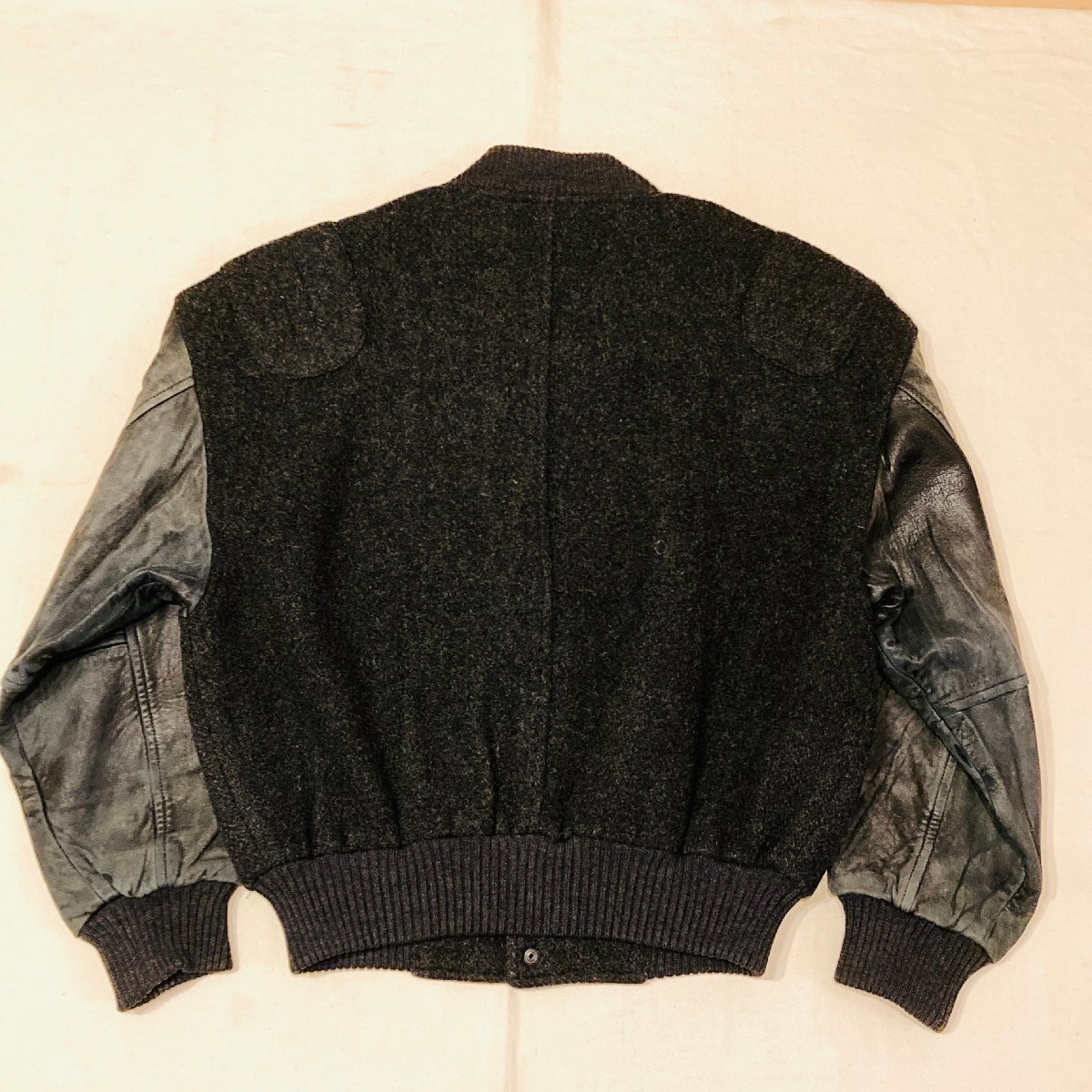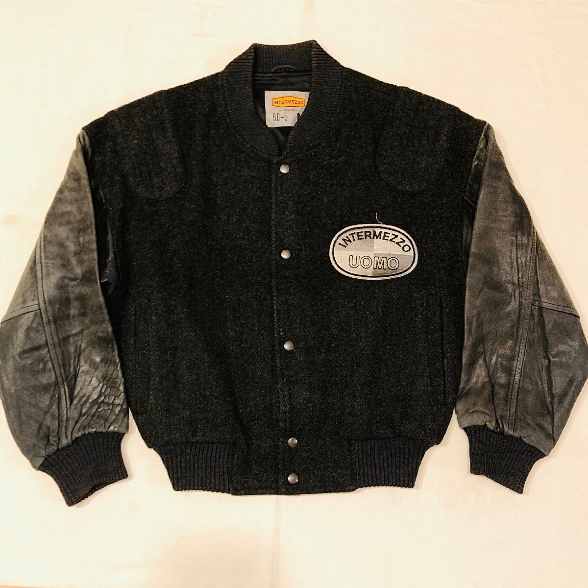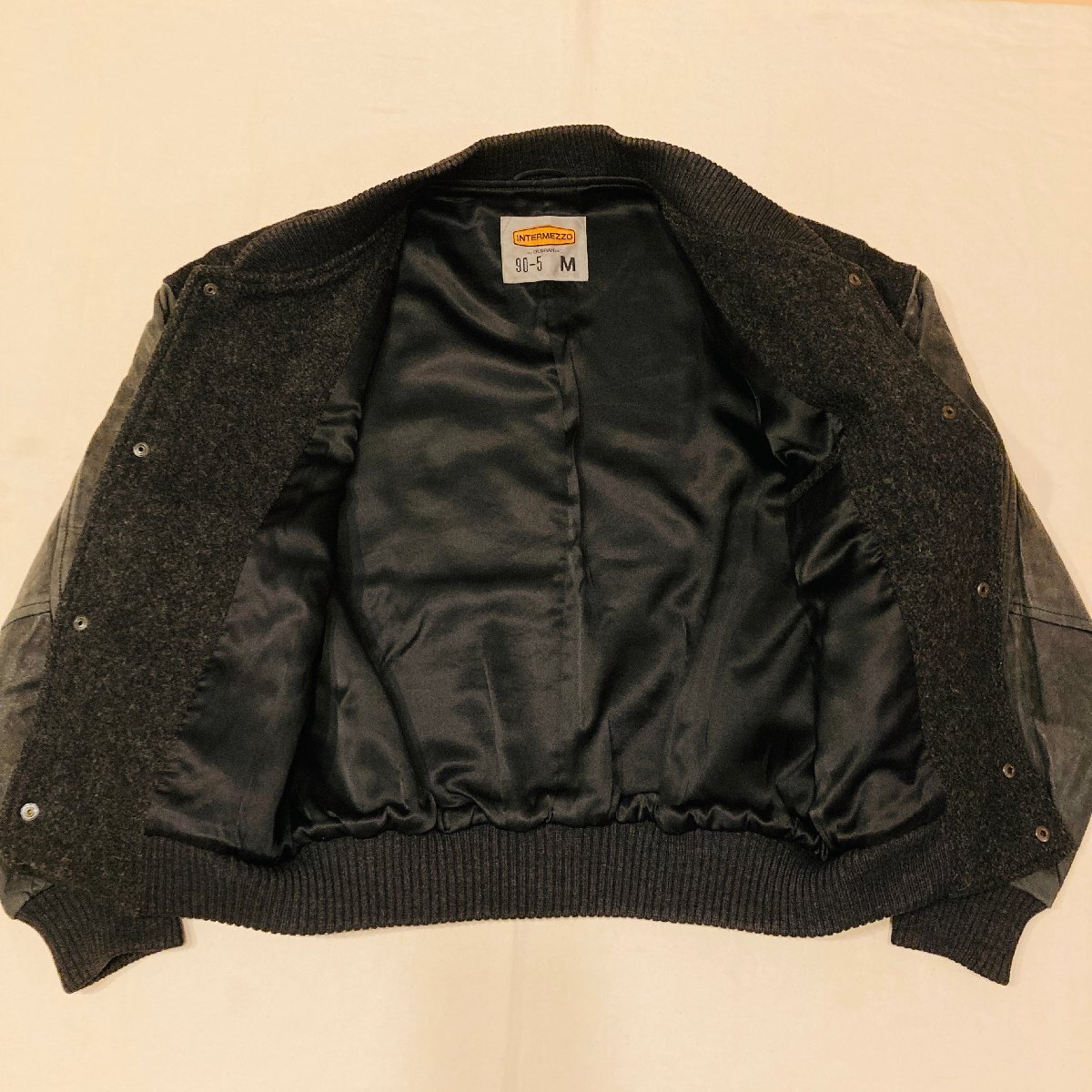 ロゴワッペン ウール/レザー 毛/羊革 スタジャン ダークグレー系 M 【INTERMEZZO】