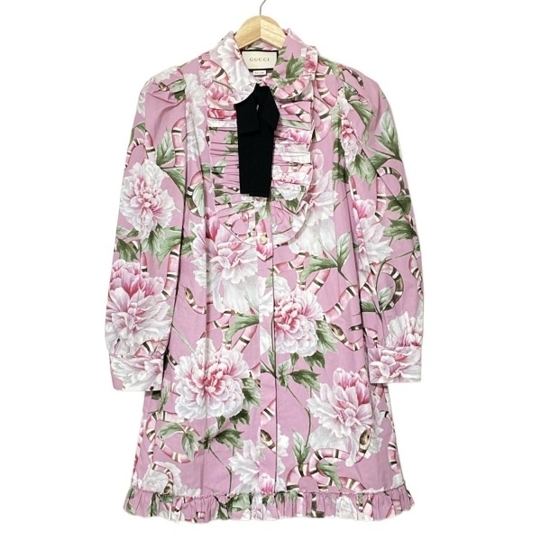 グッチ GUCCI サイズ36 S 476100 ZJP06 - ピンク×白×ダークグリーン レディース ワンピース