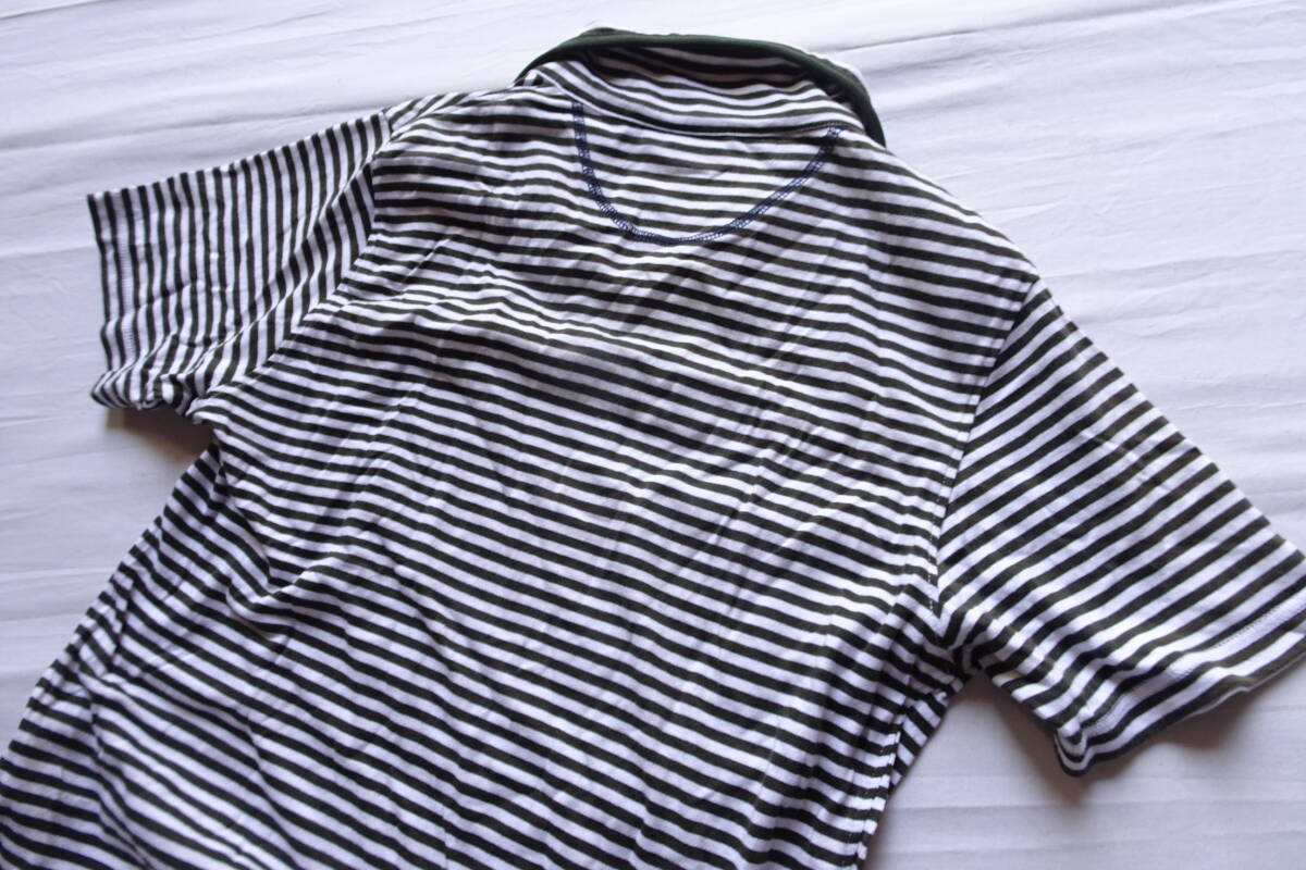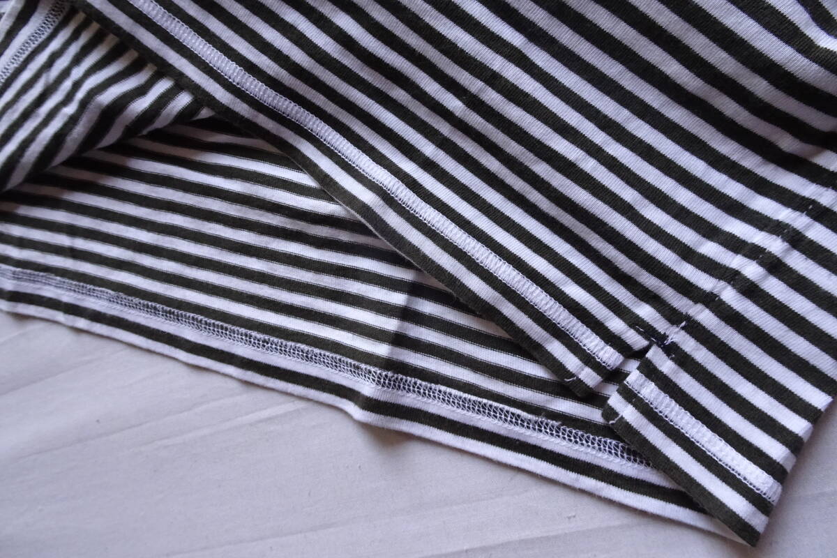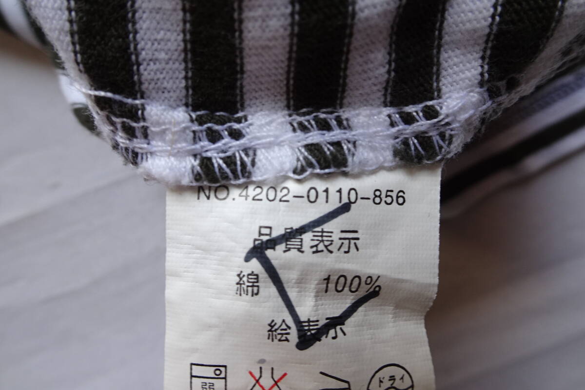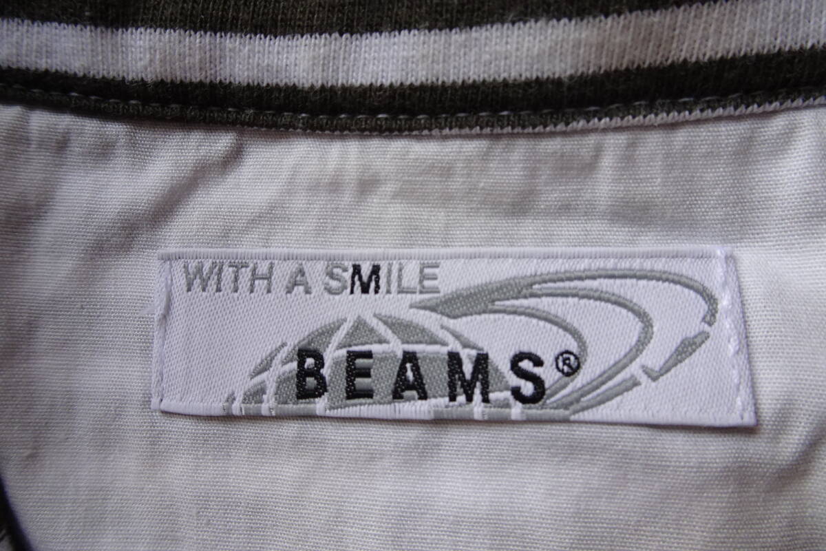 BEAMS/ビームス/襟付半袖Tシャツ/カットソー/スキッパー襟/ボーダー柄/裾サイドスリット/カーキ/白/ホワイト(9/9R7)
