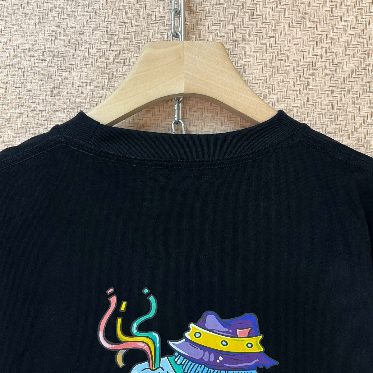 シンプルな無地のフロントデザインが大人っぽく上品な印象を与えます。バックには、カラフルでユーモアあふれる「かかし」プリントを施します。思わず振り返りたくなる、さりげない遊び心がアクセントです。シルエットは締め付け感のない、ゆったりとしたリラックスフィットで、快適な着心地を実現します。