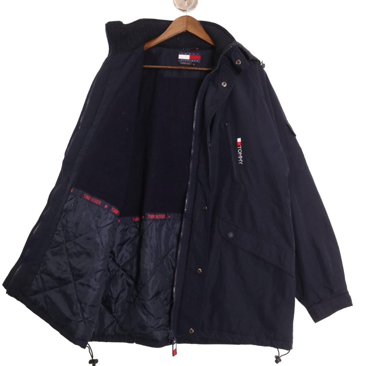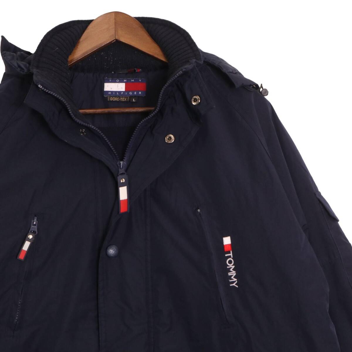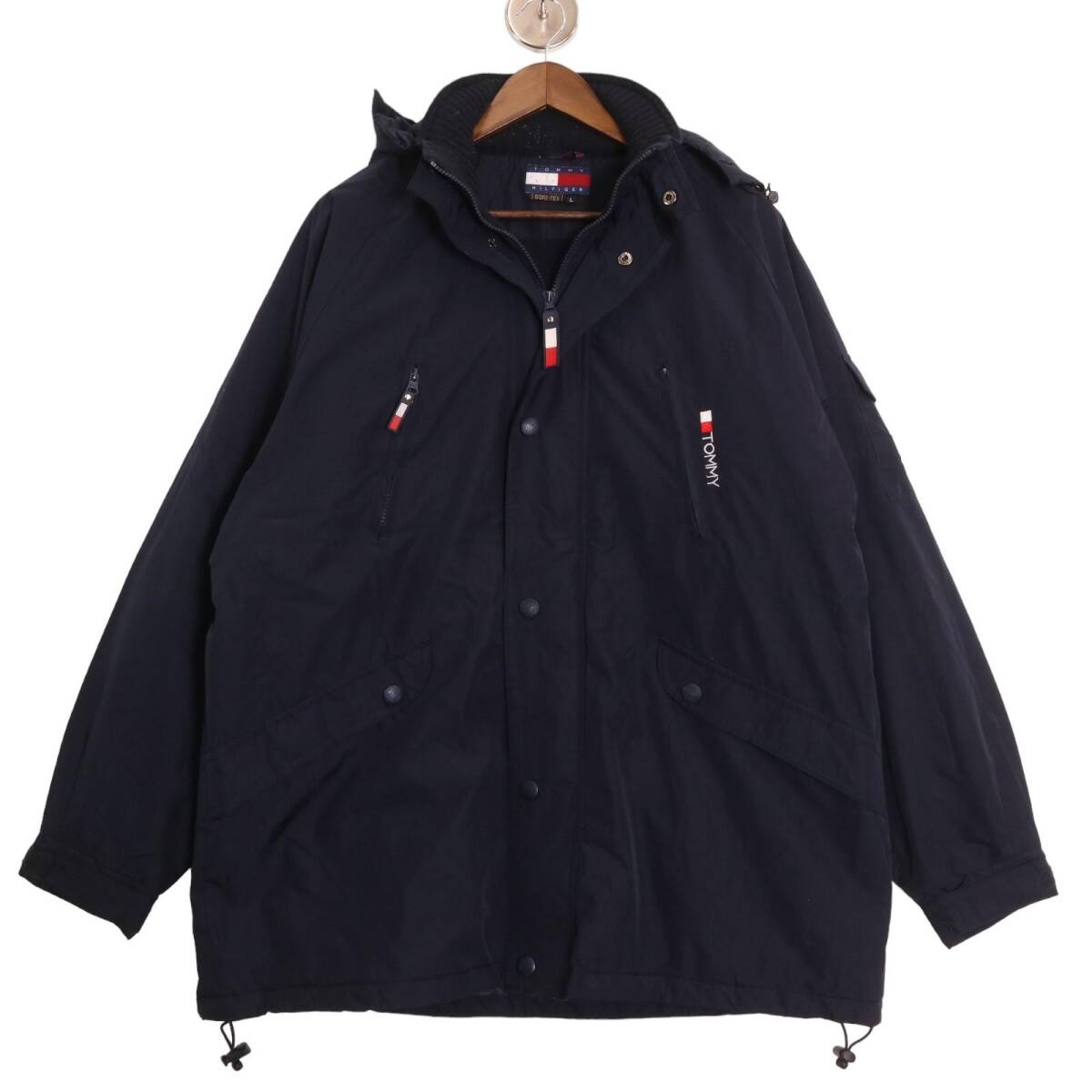 | 【商品管理番号】 A0795 【ブランド】 TOMMY HILFIGER/トミーヒルフィガー 【サイズ】 L 【実寸サイズ】 着丈:約82.5cm 身幅:約67.5cm 裄丈:約92cm 【主な素材】 表地 : ナイロン 裏地 : 13897 【色】 ネイビー 【仕様】 90年代 GORE-TEX、フード取り外し可能、裾ドローコード、裏地キルティング 【状態】 特記事項: 数カ所に毛玉、スレ、フード紐の外れ、左胸ポケットチャック部品の故障がございます。着用に問題はございません。 | |||