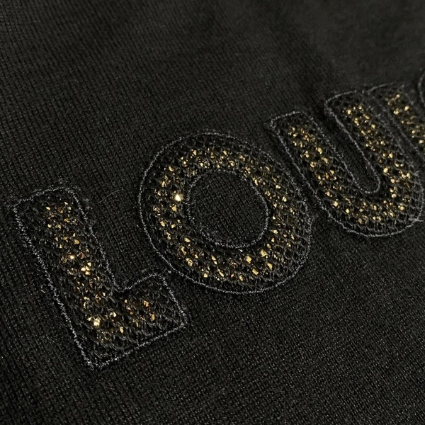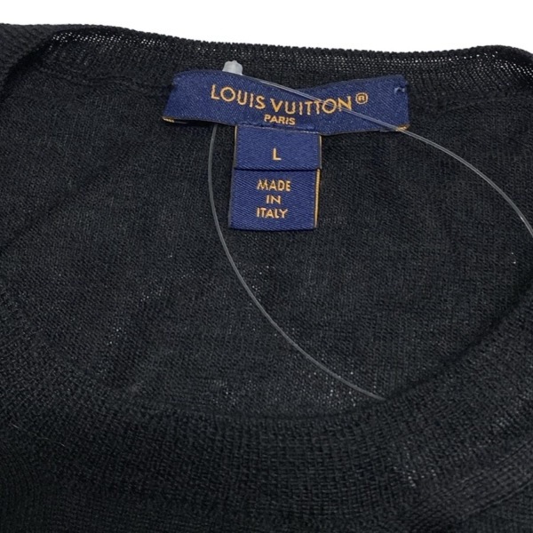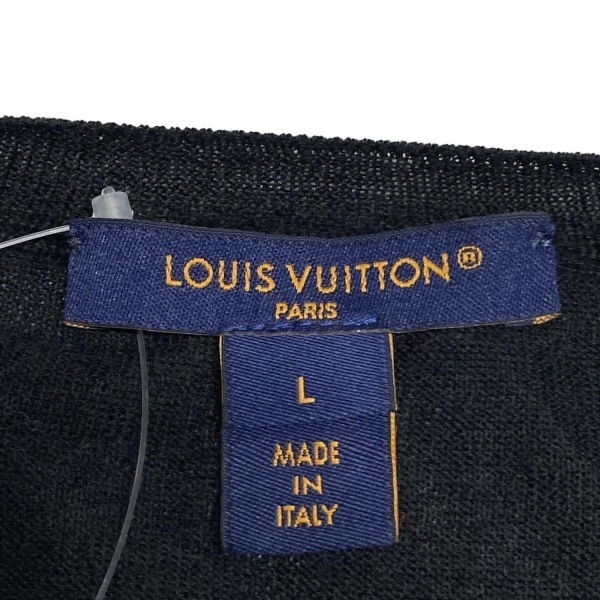 ルイヴィトン LOUIS VUITTON 長袖セーター/ニット サイズL - カシミヤ、シルク 黒 レディース クルーネック/ロゴ 美品 トップス