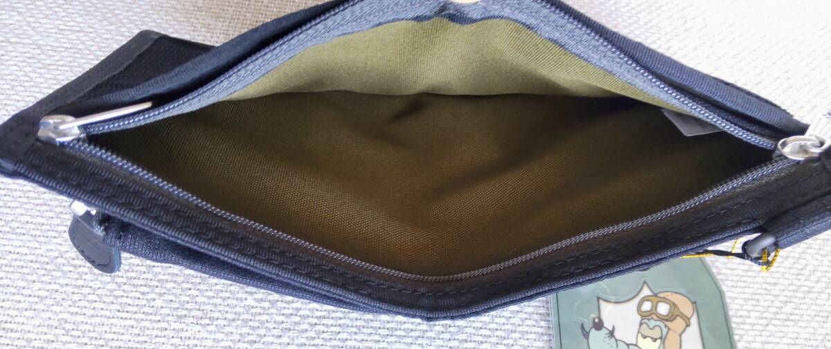 フライトジャケットの左袖に配されたシガレットポケットをモチーフにされており、かつてはタバコやペン挿しとして使われていた仕様を、ファスナー付ポケットは小銭入れ、2つのペン挿しはそのままにもう一つをカードポケットに。内装にも複数のカード段を設け、コンパクトでありながら収納スペース豊富な作りです。取り外し可能なハンドストラップが付属されます。