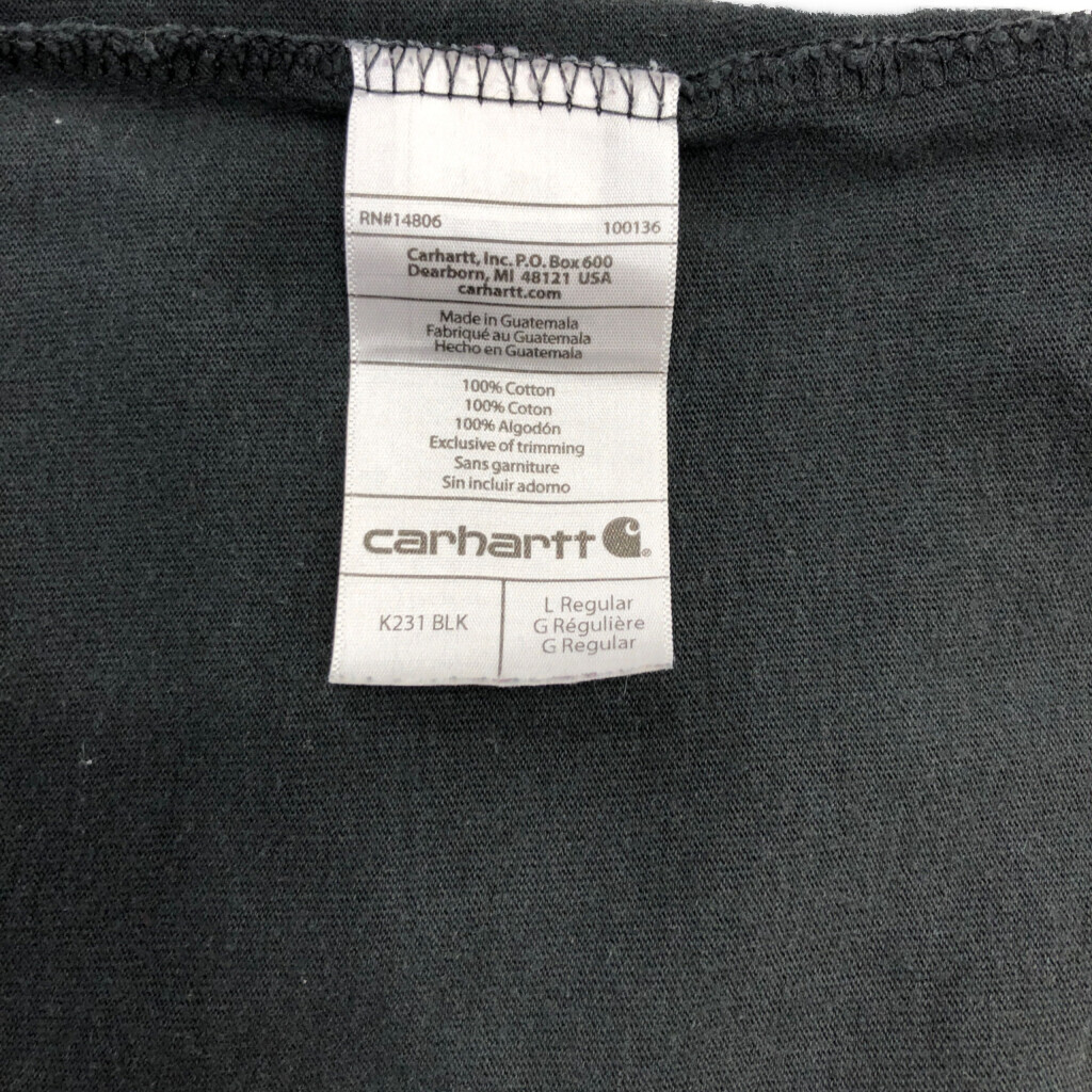 【商品管理番号】 Q4013 【ブランド】 Carhartt/カーハート 【サイズ】 L 【実寸サイズ】 肩幅:約54cm 着丈:約73cm 身幅:約58cm 袖丈:約61cm 【主な素材】 表地 : コットン 【色】 ブラック 【仕様】 袖プリント ロゴ 【状態】 汚れ:背中 特記事項:色褪せ、使用感あり |