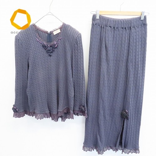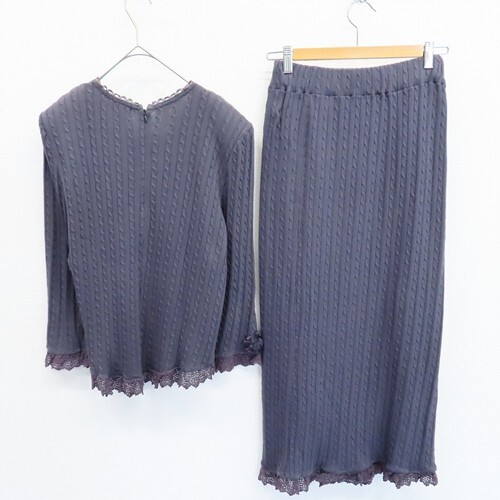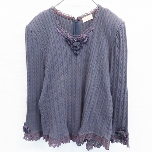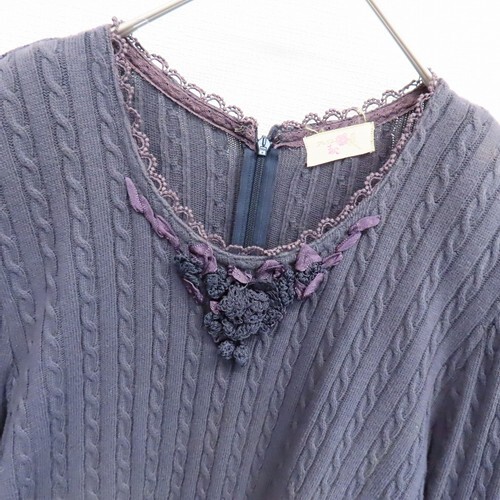 商品名 | アトリエまりこ ケーブルニット セットアップ 花モチーフ グレー系 a821165 |
