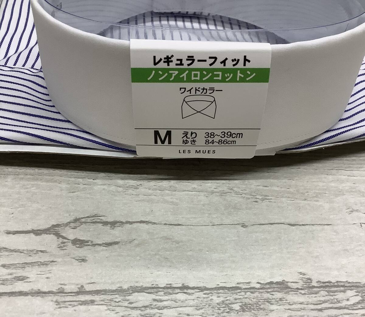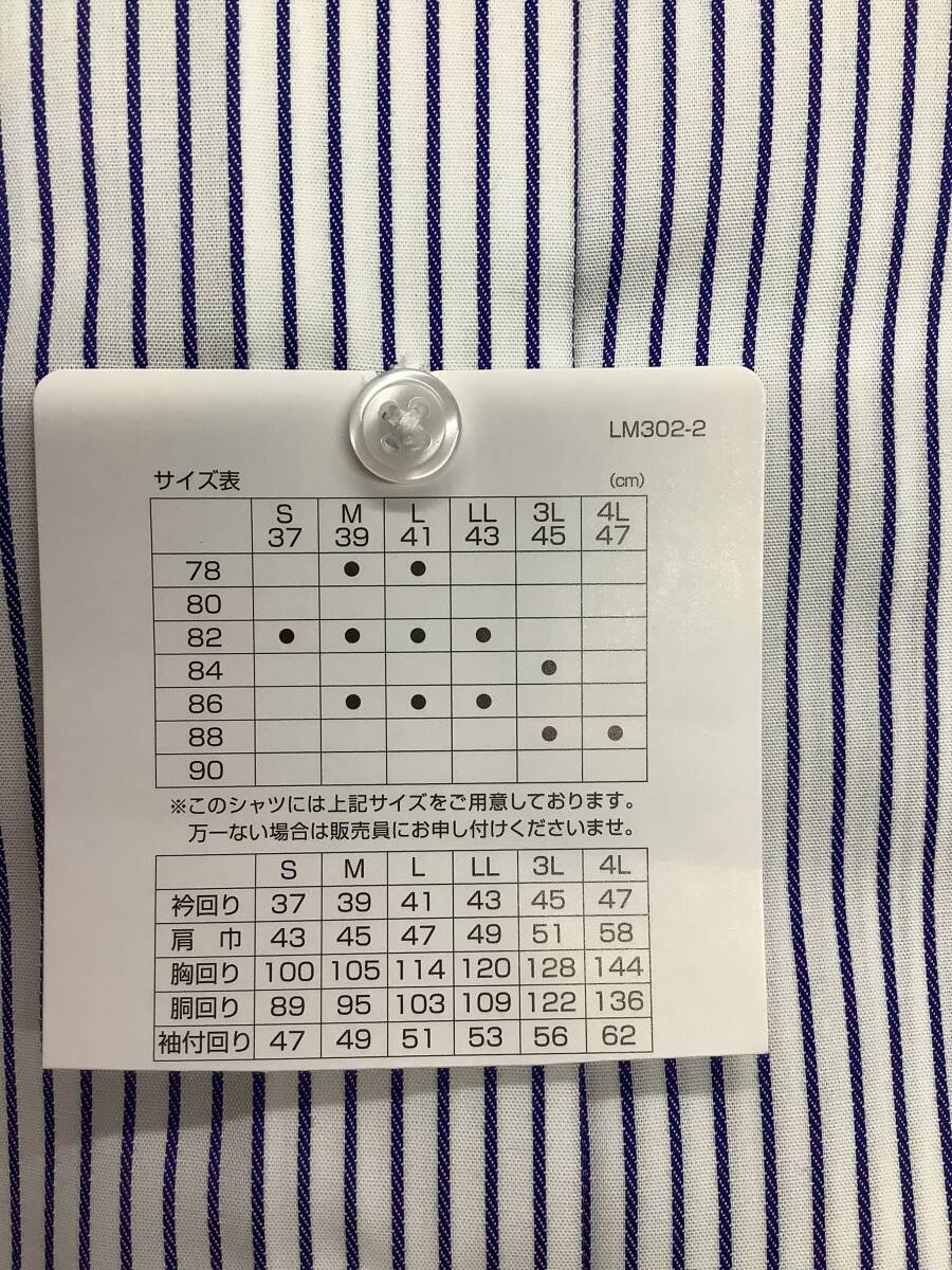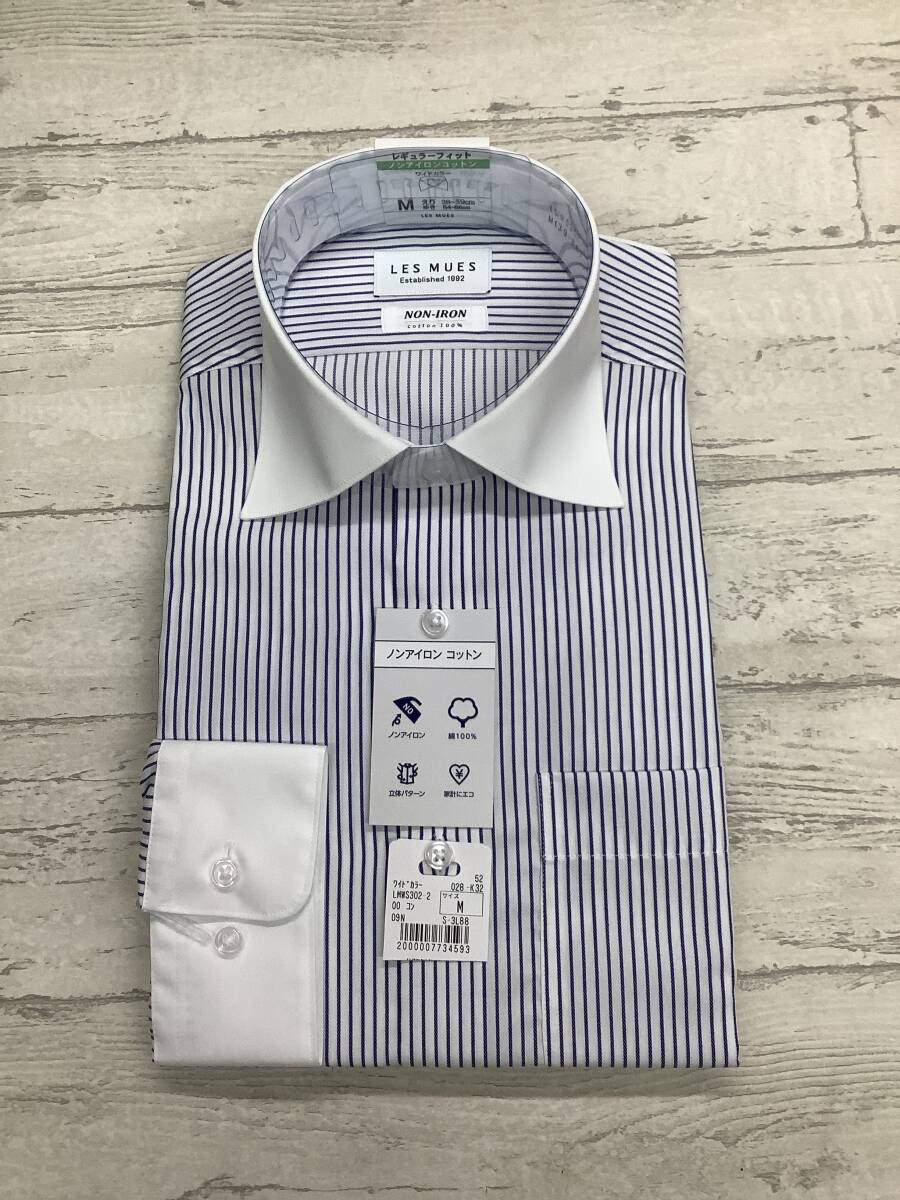 新品未使用 39-86 長袖 Mサイズ ワイドカラードレスシャツ ノンアイロンコットン 綿100% ★ブルーラインストライプ クレリックシャツ