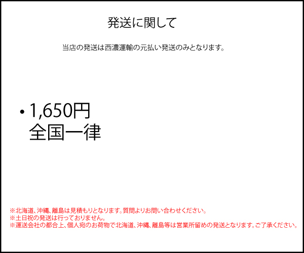 ※北海道、沖縄、離島は送料お見積りとなります。 銀行振込手数料のご負担をお願いします。 |