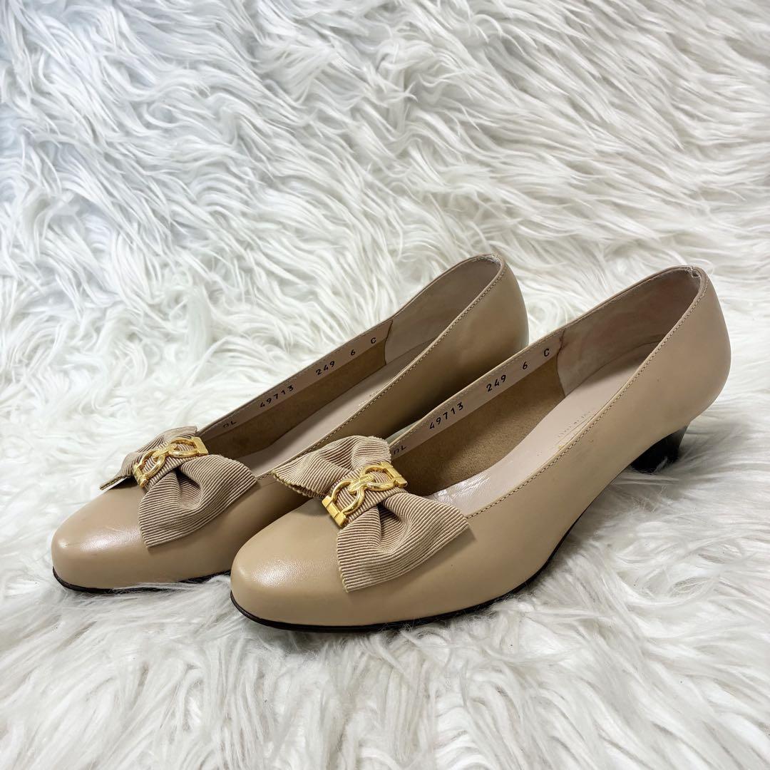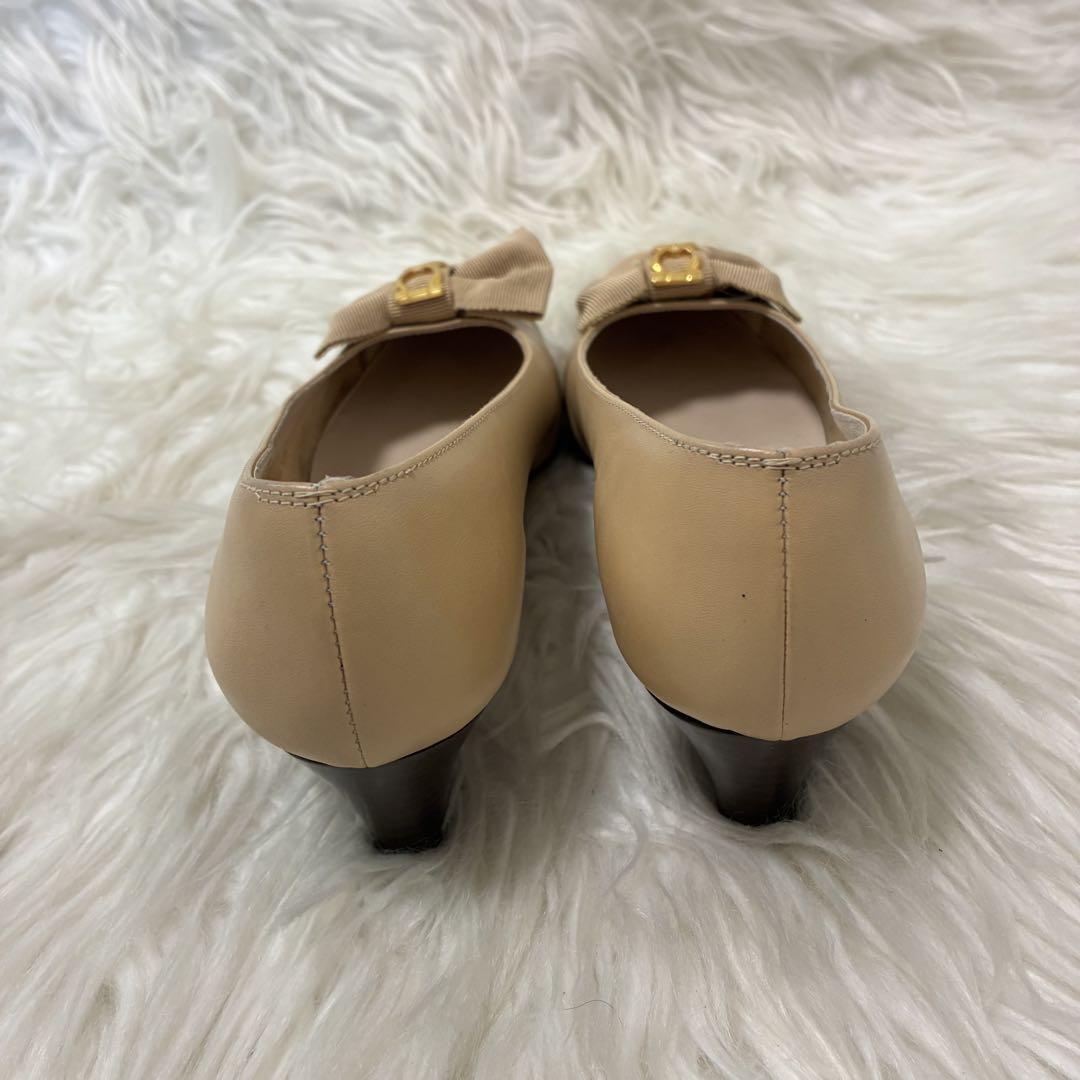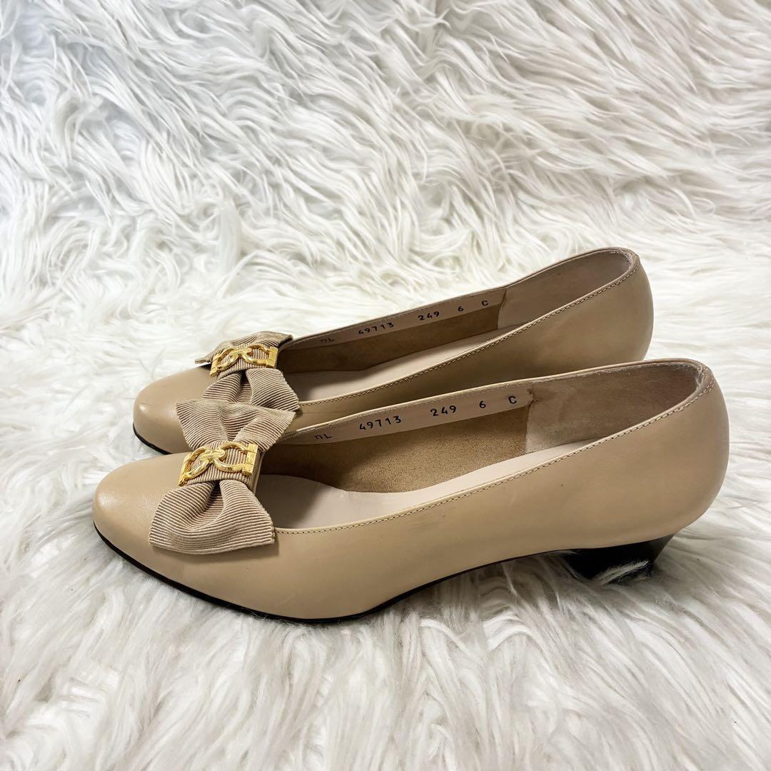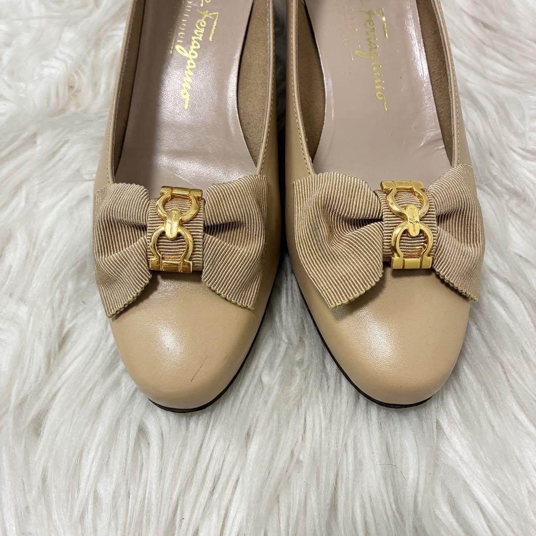 FERRAGAMO フェラガモ パンプス ガンチーニ 23cm ベージュ リボン  4684 00088012
