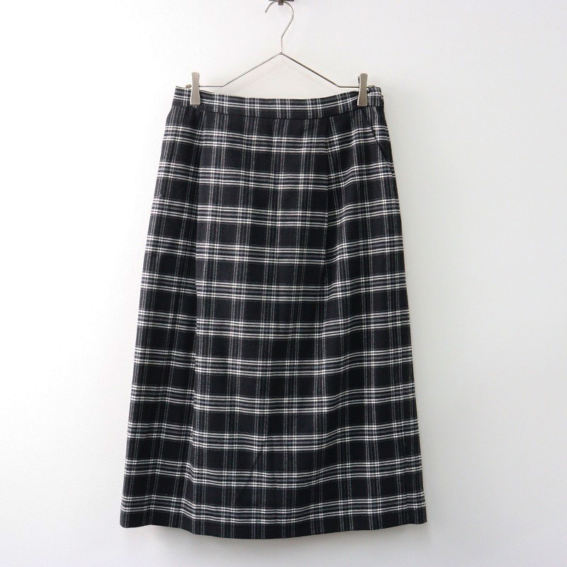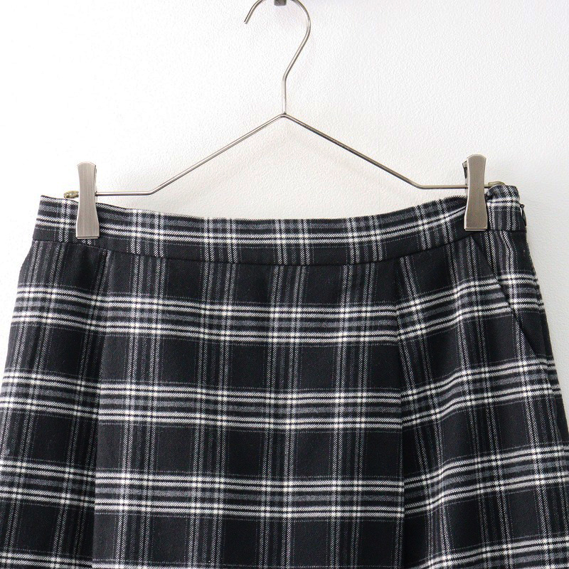 美品 定価10890円 大きいサイズ インディヴィ INDIVI【洗える】タックストレート ミディスカート ブラックチェック 13┃【2400014598438】